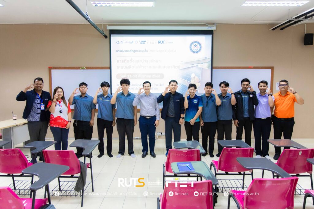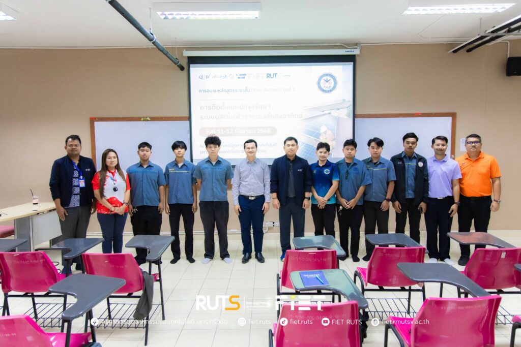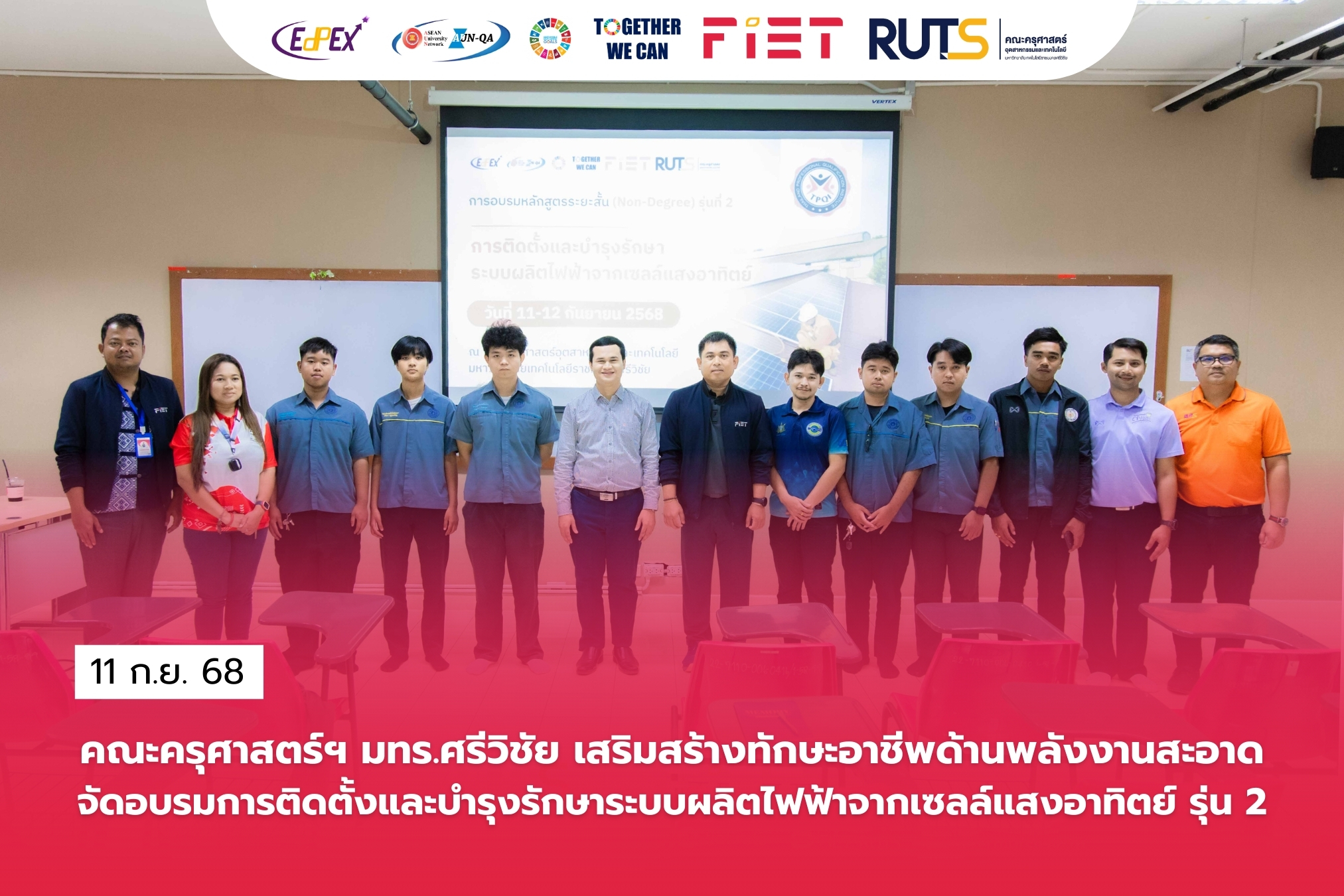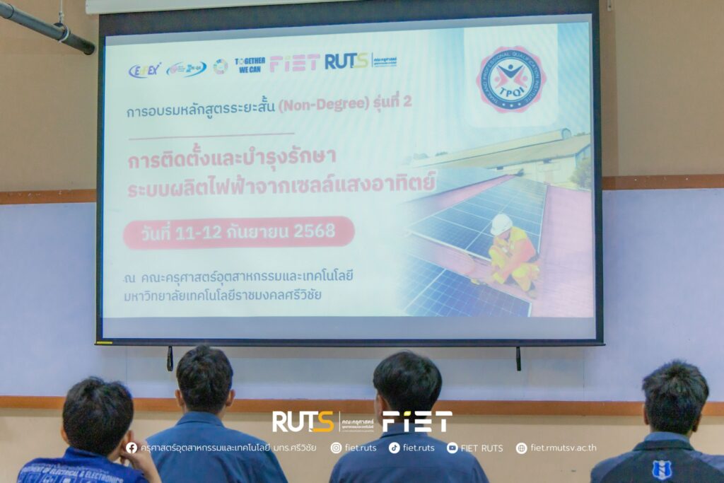 วันที่ 11 กันยายน 2568 คณะครุศาสตร์อุตสาหกรรมและเทคโนโลยี มหาวิทยาลัยเทคโนโลยีราชมงคลศรีวิชัย ได้จัดโครงการอบรมหลักสูตรระยะสั้น (Non-Degree) แบบไม่สะสมหน่วยกิต รุ่นที่ 2 ในหัวข้อ “การติดตั้งและบำรุงรักษาระบบผลิตไฟฟ้าจากเซลล์แสงอาทิตย์” โดยมีรองศาสตราจารย์ ดร.จักรพงษ์ จิตต์จำนงค์ รองคณบดีฝ่ายบริหารและวางแผน เป็นประธานเปิดโครงการ ณ อาคารเรียนและปฏิบัติการรวม คณะครุศาสตร์อุตสาหกรรมและเทคโนโลยี