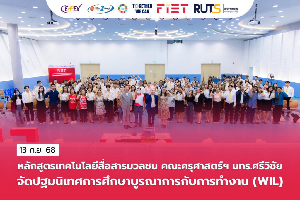 วันที่ 13 กันยายน 2568 คณะครุศาสตร์อุตสาหกรรมและเทคโนโลยี มหาวิทยาลัยเทคโนโลยีราชมงคลศรีวิชัย จัดโครงการปฐมนิเทศการศึกษาบูรณาการกับการทำงาน (Work Integrated Learning : WIL) สำหรับนักศึกษาหลักสูตรสาขาวิชาเทคโนโลยีสื่อสารมวลชน โดยมี ผู้ช่วยศาสตราจารย์ไชยยะ ธนพัฒน์ศิริ คณบดีคณะครุศาสตร์อุตสาหกรรมและเทคโนโลยี เป็นประธานเปิดโครงการ ณ ห้องประชุมชูพันธ์ คณะครุศาสตร์อุตสาหกรรมและเทคโนโลยี