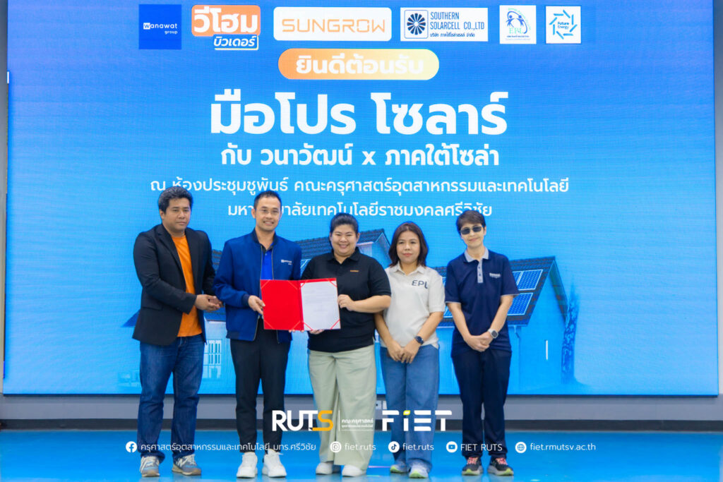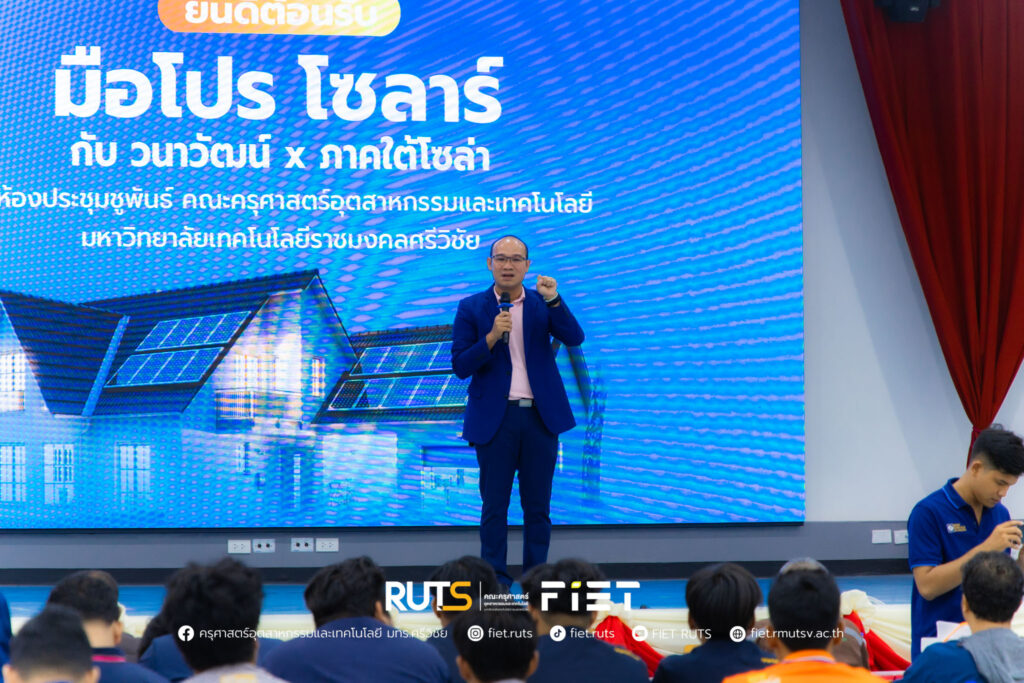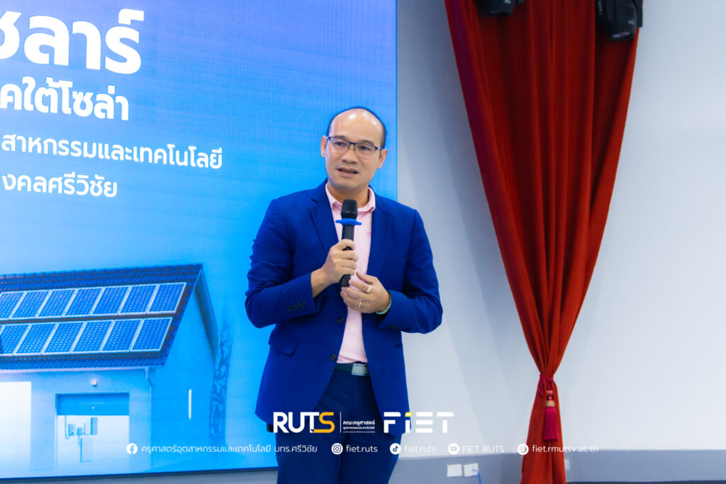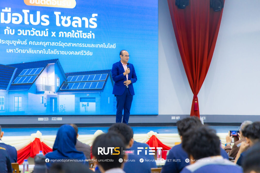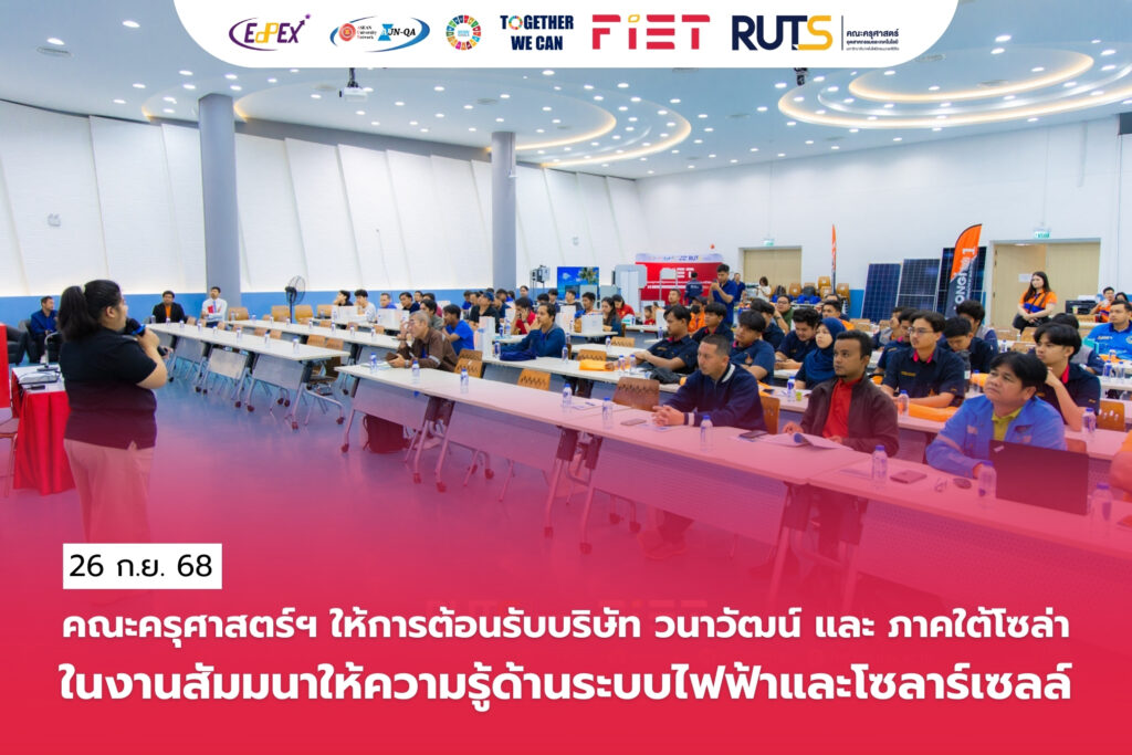 วันที่ 26 กันยายน 2568 คณะครุศาสตร์อุตสาหกรรมและเทคโนโลยี นำโดย ผู้ช่วยศาสตราจารย์ไชยยะ ธนพัฒน์ศิริ คณบดีคณะครุศาสตร์อุตสาหกรรมและเทคโนโลยี พร้อมด้วยคณะผู้บริหาร ร่วมต้อนรับบริษัท ซันโกร กันกุล วนาวัฒน์ และ ภาคใต้โซล่า อีเนอร์จี้ เพียวไลฟ์ ในงานสัมมนาความรู้สินค้า Sungrow ณ ห้องประชุมชูพันธ์ คณะครุศาสตร์อุตสาหกรรมและเทคโนโลยี