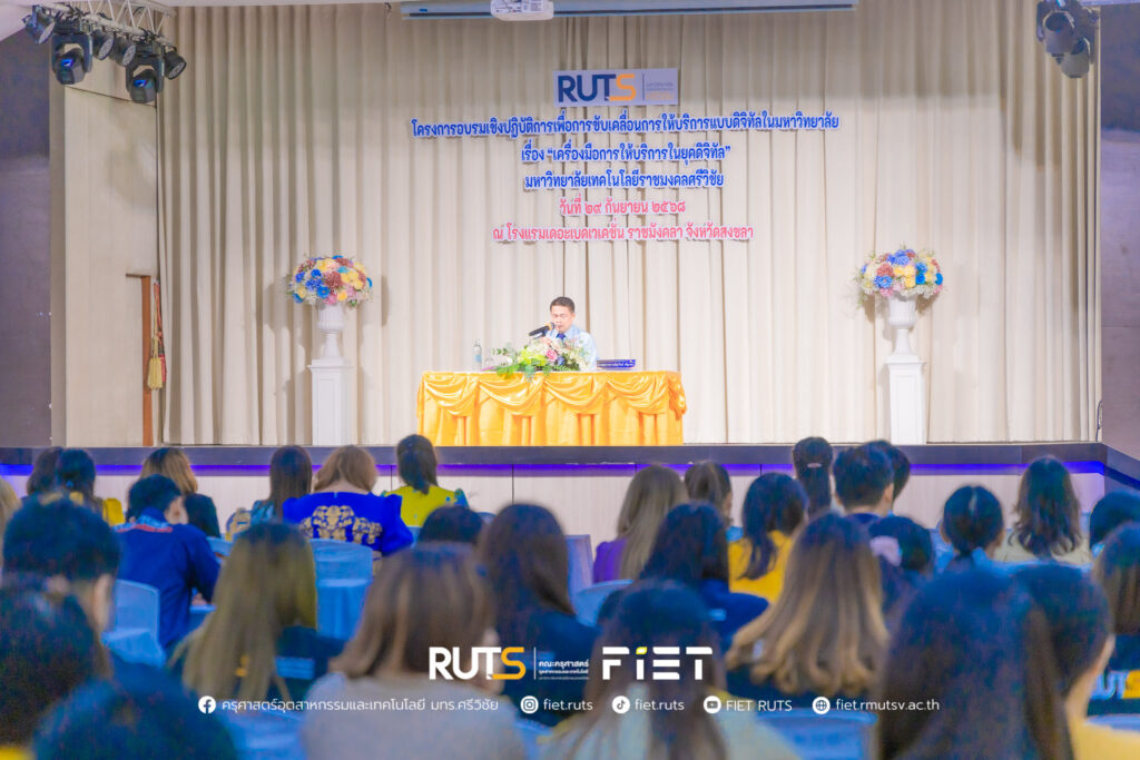 วันที่ 29 กันยายน 2568 คณะครุศาสตร์อุตสาหกรรมและเทคโนโลยี นำโดย ผู้ช่วยศาสตราจารย์ไชยยะ ธนพัฒน์ศิริ คณบดีคณะครุศาสตร์อุตสาหกรรมและเทคโนโลยี พร้อมด้วยผู้บริหารและบุคลากร เข้าร่วม โครงการอบรมเชิงปฏิบัติการเพื่อการขับเคลื่อนการให้บริการแบบดิจิทัลในมหาวิทยาลัย เรื่อง “เครื่องมือการให้บริการในยุคดิจิทัล” โดยมี ศาสตราจารย์ ดร.สุวัจน์ ธัญรส อธิการบดีมหาวิทยาลัยเทคโนโลยีราชมงคลศรีวิชัย ให้เกียรติเป็นประธานเปิดโครงการ ณ โรงแรมเดอะเบด เวเคชั่น ราชมังคลา จังหวัดสงขลา