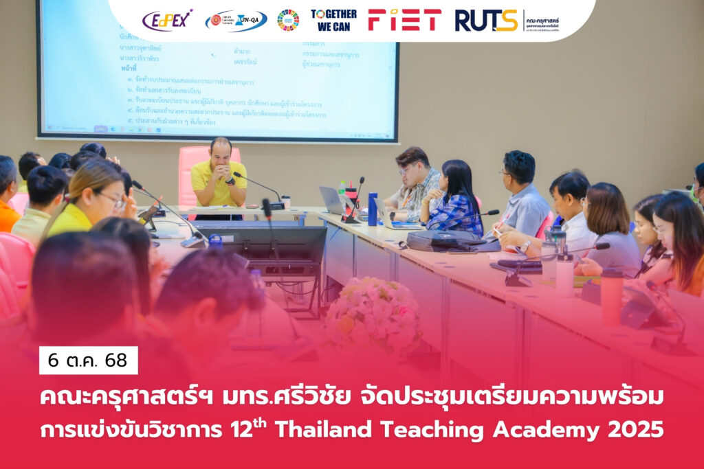 วันที่ 6 ตุลาคม 2568 คณะครุศาสตร์อุตสาหกรรมและเทคโนโลยี จัดประชุมเตรียมความพร้อมเป็นเจ้าภาพ การแข่งขันทักษะทางวิชาการระดับประเทศ ของเครือข่ายครุศาสตร์อุตสาหกรรม ครั้งที่ 12 Teaching Academy Award 2025 ภายใต้แนวคิด “Education for Sustainable Development” โดยมี ผู้ช่วยศาสตราจารย์ไชยยะ ธนพัฒน์ศิริ คณบดีคณะครุศาสตร์อุตสาหกรรมและเทคโนโลยี เป็นประธานการประชุม ณ ห้องประชุมทับทิม 1 คณะครุศาสตร์อุตสาหกรรมและเทคโนโลยี มทร. ศรีวิชัย