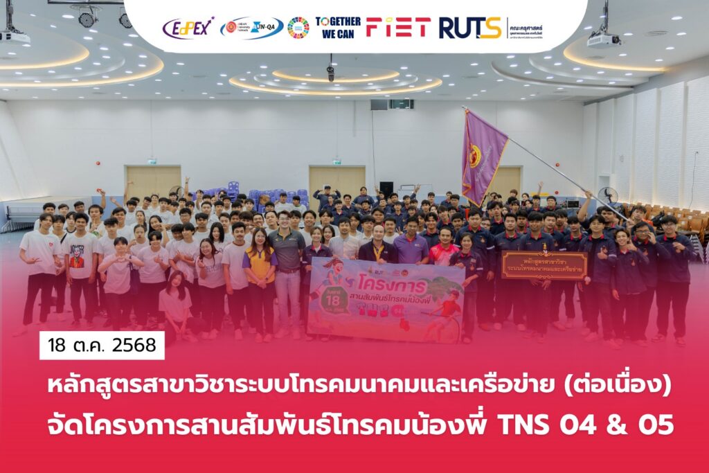 วันที่ 18 ตุลาคม 2568 หลักสูตรสาขาวิชาระบบโทรคมนาคมและเครือข่าย (ต่อเนื่อง) คณะครุศาสตร์อุตสาหกรรมและเทคโนโลยี มหาวิทยาลัยเทคโนโลยีราชมงคลศรีวิชัย จัดโครงการ “สานสัมพันธ์โทรคมน้องพี่ TNS 04 & 05”