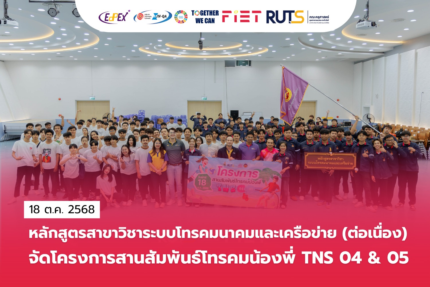 วันที่ 18 ตุลาคม 2568 หลักสูตรสาขาวิชาระบบโทรคมนาคมและเครือข่าย (ต่อเนื่อง) คณะครุศาสตร์อุตสาหกรรมและเทคโนโลยี มหาวิทยาลัยเทคโนโลยีราชมงคลศรีวิชัย จัดโครงการ “สานสัมพันธ์โทรคมน้องพี่ TNS 04 & 05”