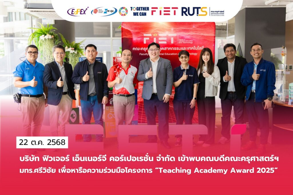 วันนี้ 22 ตุลาคม 2568 บริษัท ฟิวเจอร์ เอ็นเนอร์จี คอร์เปอเรชั่น จำกัด เข้าพบ ผู้ช่วยศาสตราจารย์ไชยยะ ธนพัฒน์ศิริ คณบดีคณะครุศาสตร์อุตสาหกรรมและเทคโนโลยี มทร.ศรีวิชัย พร้อมด้วยประธานหลักสูตรสาขาวิชาวิศวกรรมไฟฟ้า และคณาจารย์ประจำหลักสูตร เพื่อหารือแนวทางความร่วมมือในการดำเนินโครงการ “Teaching Academy Award 2025” ภายใต้แนวคิด “Education for Sustainable Development”