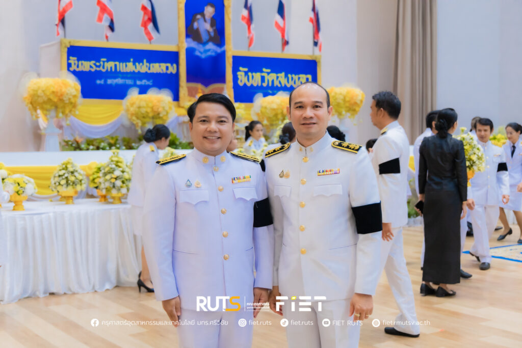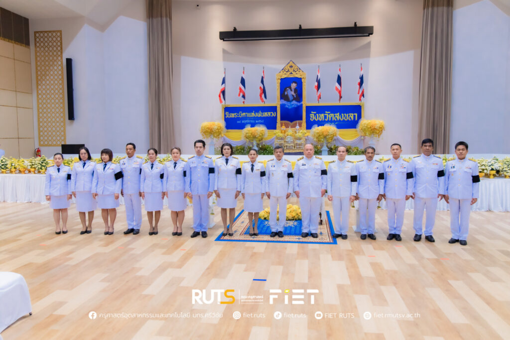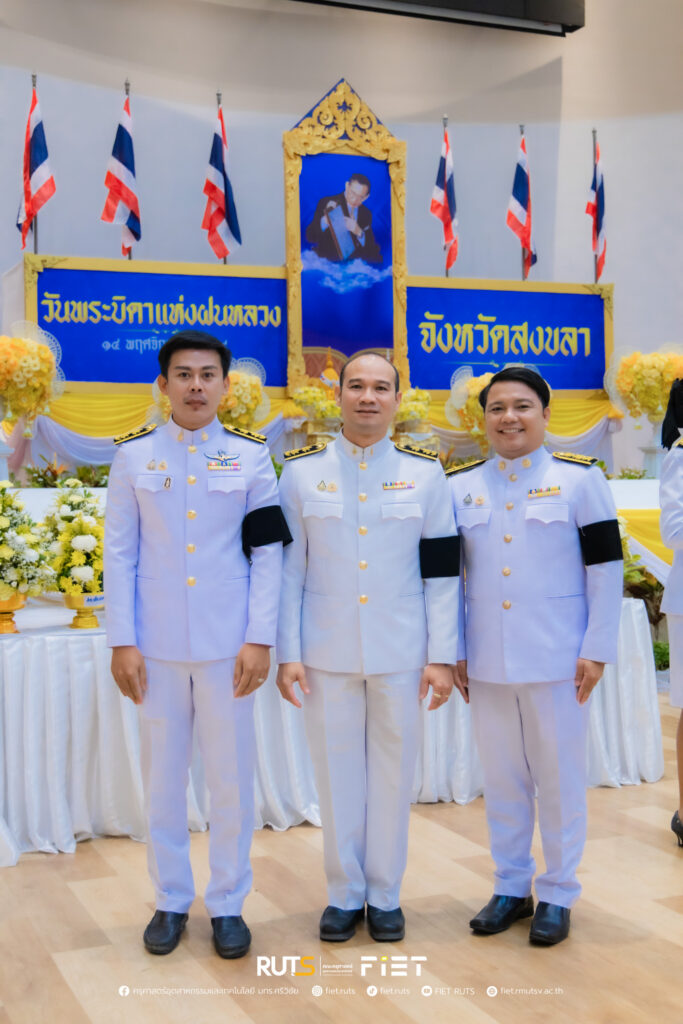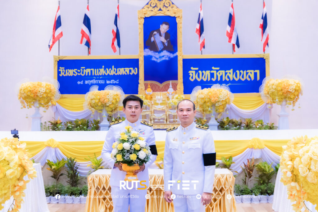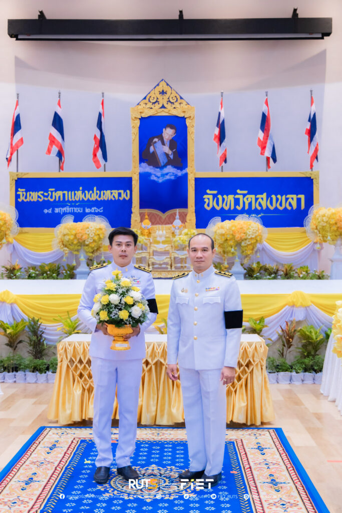 วันที่ 14 พฤศจิกายน 2568 มหาวิทยาลัยเทคโนโลยีราชมงคลศรีวิชัย โดย ผู้ช่วยศาสตราจารย์ไชยยะ ธนพัฒน์ศิริ คณบดีคณะครุศาสตร์อุตสาหกรรมและเทคโนโลยี ผู้แทนอธิการบดีมหาวิทยาลัยเทคโนโลยีราชมงคลศรีวิชัย พร้อมด้วย นายอนุกูล นันทพุธ หัวหน้าสำนักงานคณบดีคณะครุศาสตร์อุตสาหกรรมและเทคโนโลยี ร่วมพิธีวางพานพุ่มดอกไม้สดถวายราชสักการะ พระบาทสมเด็จพระมหาภูมิพลอดุลยเดชมหาราช บรมนาถบพิตร เนื่องในวันพระบิดาแห่งฝนหลวง ประจำปี 2568 โดยมี นายรัฐศาสตร์ ชิดชู ผู้ว่าราชการจังหวัดสงขลา เป็นประธานในพิธี พร้อมด้วยหัวหน้าส่วนราชการประจำจังหวัดสงขลา หน่วยงานภาครัฐ และหน่วยงานภาคเอกชน เข้าร่วม ณ หอประชุมจังหวัดสงขลา