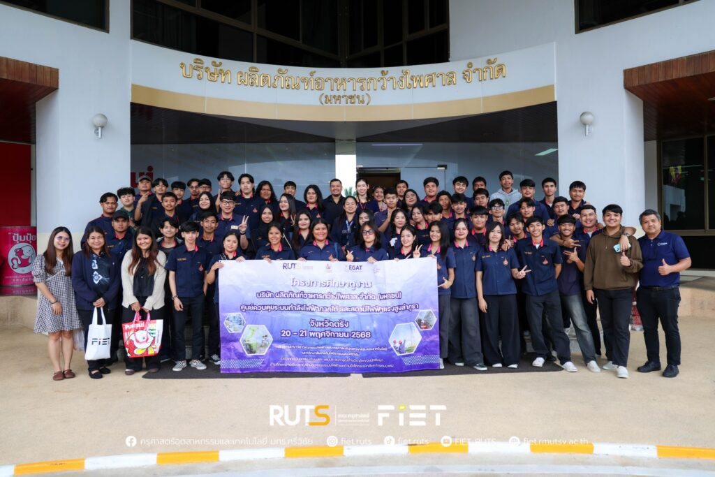 วันที่ 20–21 พฤศจิกายน 2568 คณะครุศาสตร์อุตสาหกรรมและเทคโนโลยี มทร.ศรีวิชัย จัดโครงการศึกษาดูงานเพื่อพัฒนาประสบการณ์ด้านวิชาชีพของนักศึกษาในสาขาที่เกี่ยวข้องกับระบบไฟฟ้า อิเล็กทรอนิกส์ และโทรคมนาคม โดยมีอาจารย์ประจำหลักสูตรและนักศึกษาสาขาวิชาวิศวกรรมไฟฟ้าชั้นปีที่ 3 เข้าร่วมศึกษาดูงาน ณ บริษัท ผลิตภัณฑ์อาหารกว้างไพศาล จำกัด (มหาชน) จังหวัดตรัง และสถานีไฟฟ้าแรงสูงลำภูรา จังหวัดตรัง