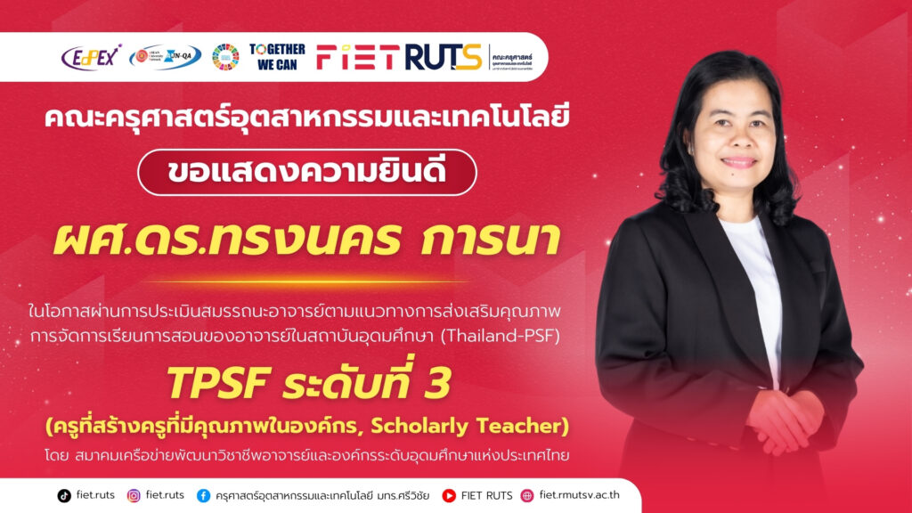 🎉 ขอแสดงความยินดี ผศ.ดร.ทรงนคร การนา ในโอกาสผ่านการประเมินสมรรถนะอาจารย์ตามแนวทางการส่งเสริมคุณภาพการจัดการเรียนการสอนของอาจารย์ในสถาบันอุดมศึกษา (Thailand-PSF)⭐ TPSF ระดับที่ 3