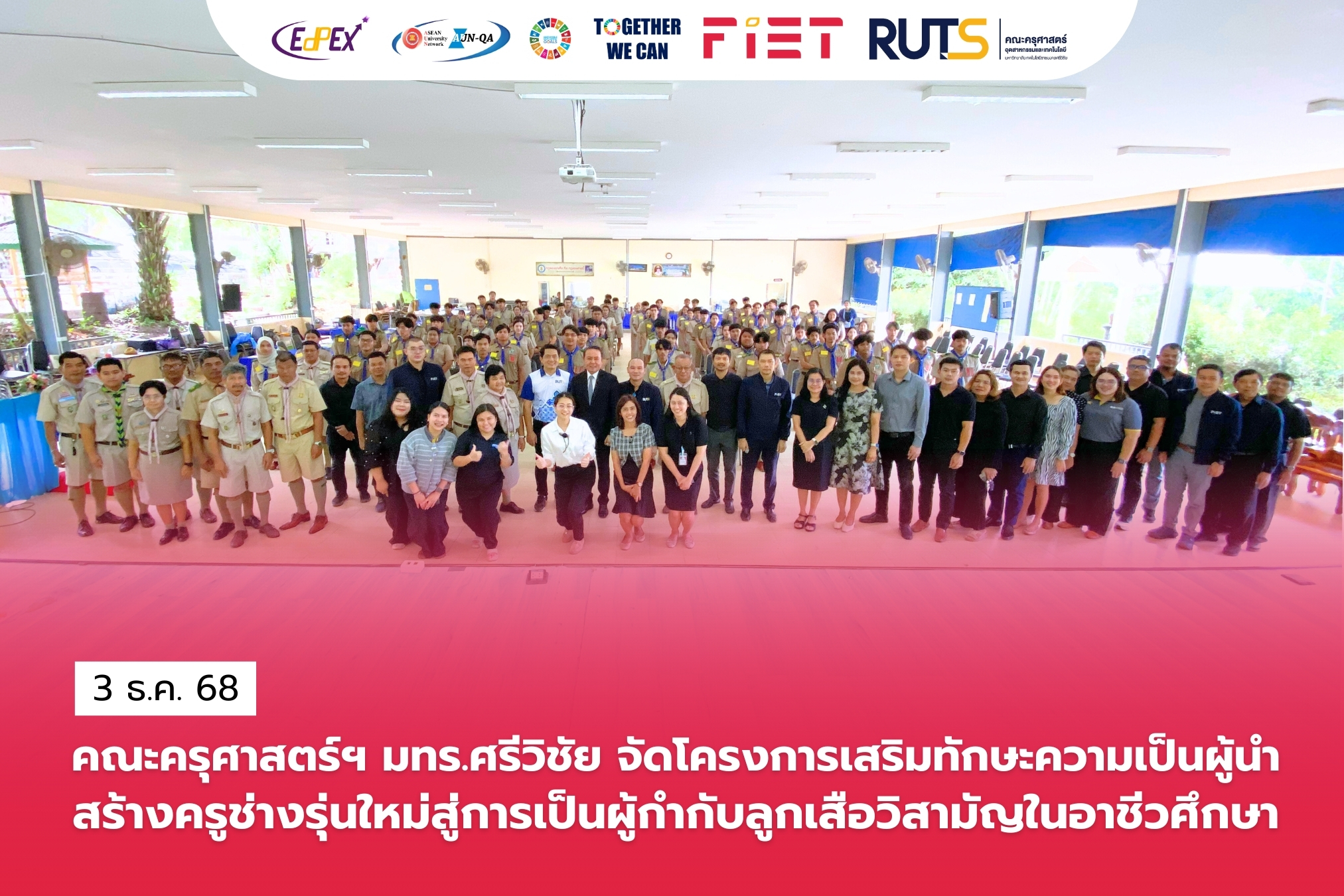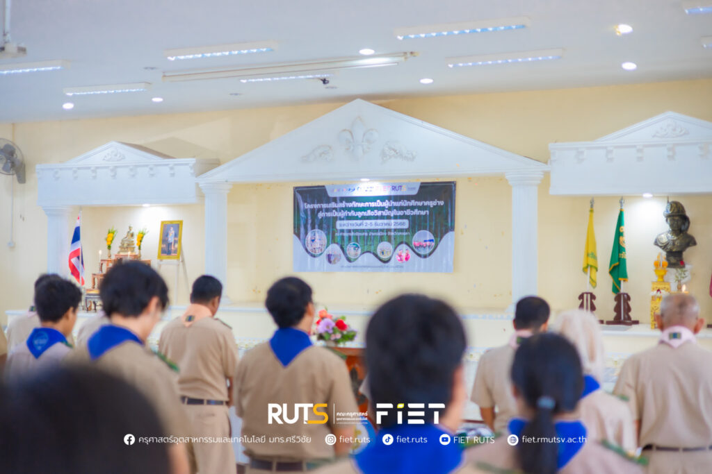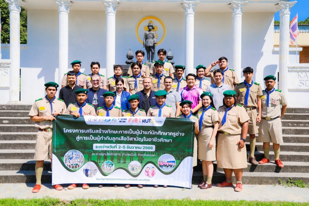 วันที่ 3 ธันวาคม 2568 คณะครุศาสตร์อุตสาหกรรมและเทคโนโลยี มหาวิทยาลัยเทคโนโลยีราชมงคลศรีวิชัย จัดโครงการ “เสริมสร้างทักษะการเป็นผู้นำแก่นักศึกษาครูช่าง สู่การเป็นผู้กำกับลูกเสือวิสามัญในอาชีวศึกษา” ณ ค่ายลูกเสือรัตรสาร อำเภอเมือง จังหวัดสงขลา โดยได้รับเกียรติจาก ผู้ช่วยศาสตราจารย์ปิยะ ประสงค์จันทร์ รองอธิการบดีมหาวิทยาลัยเทคโนโลยีราชมงคลศรีวิชัย เป็นประธานในพิธีเปิดโครงการ