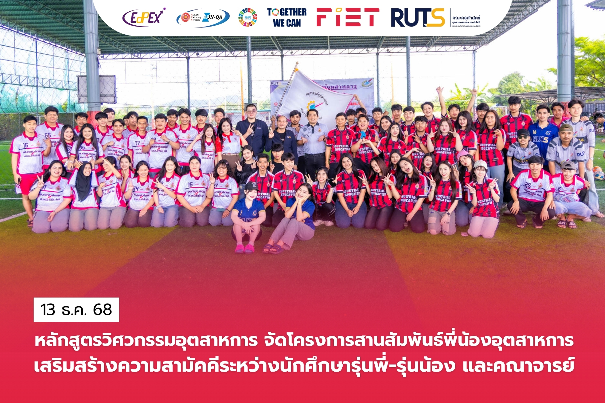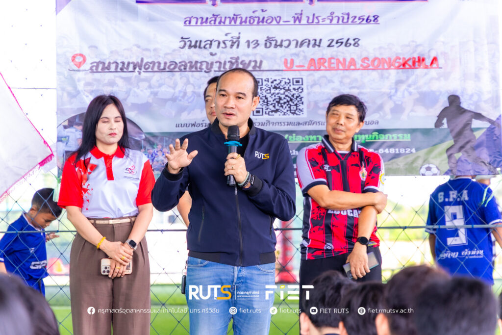 วันที่ 13 ธันวาคม 2568 หลักสูตรสาขาวิชาวิศวกรรมอุตสาหการ คณะครุศาสตร์อุตสาหกรรมและเทคโนโลยี มหาวิทยาลัยเทคโนโลยีราชมงคลศรีวิชัย จัดโครงการสานสัมพันธ์พี่น้องอุตสาหการ โดยได้รับเกียรติจาก ผู้ช่วยศาสตราจารย์ไชยยะ ธนพัฒน์ศิริ คณบดีคณะครุศาสตร์อุตสาหกรรมและเทคโนโลยี เป็นประธานในพิธีเปิดโครงการ พร้อมด้วยผู้บริหาร อาจารย์ บุคลากร และนักศึกษา เข้าร่วม ณ สนามฟุตบอลหญ้าเทียม U-ARENA