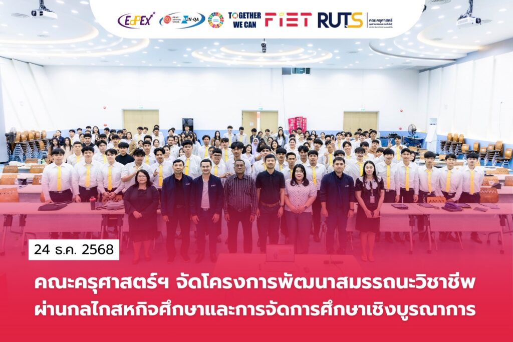 วันนี้ 24 ธันวาคม 2568 คณะครุศาสตร์อุตสาหกรรมและเทคโนโลยี จัดโครงการ พัฒนาสมรรถนะวิชาชีพผ่านกลไกสหกิจศึกษาและการจัดการศึกษาเชิงบูรณาการกับการทำงาน เพื่อเตรียมความพร้อมด้านทักษะวิชาชีพให้แก่นักศึกษา โดยได้รับเกียรติจาก รองศาสตราจารย์ ดร.ธนัสถ์ นนทพุทธ รองคณบดีฝ่ายวิชาการและวิจัย เป็นประธานกล่าวเปิดโครงการ และ ผู้ช่วยศาสตราจารย์นรงฤทธิ์ เสนาจิตร รองหัวหน้าหน่วยฝึกประสบการณ์และสหกิจศึกษา กล่าวรายงานวัตถุประสงค์และที่มาของการจัดโครงการ พร้อมด้วยนักศึกษาชั้นปีที่ 2 ณ ห้องประชุมชูพันธ์ คณะครุศาสตร์อุตสาหกรรมและเทคโนโลยี