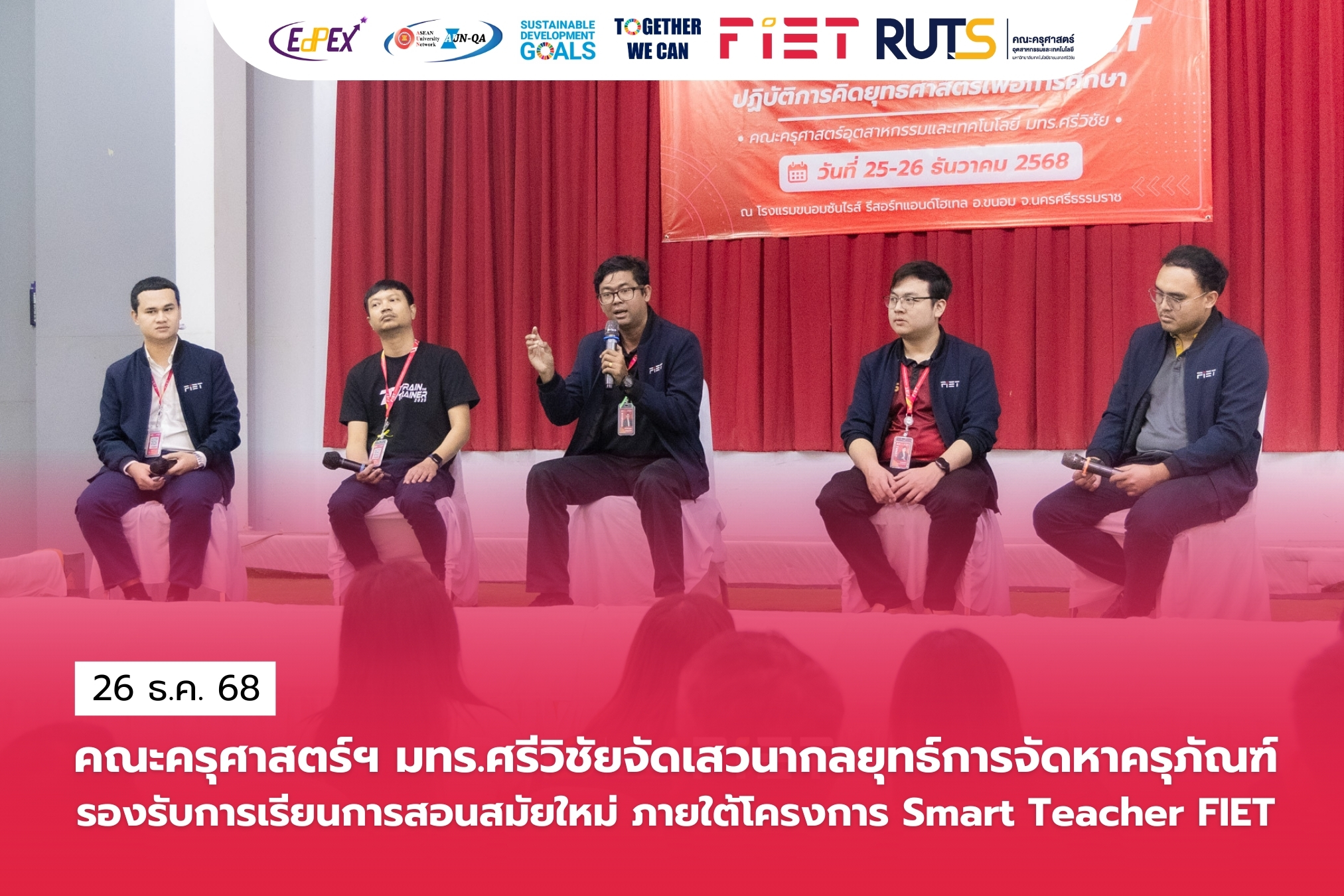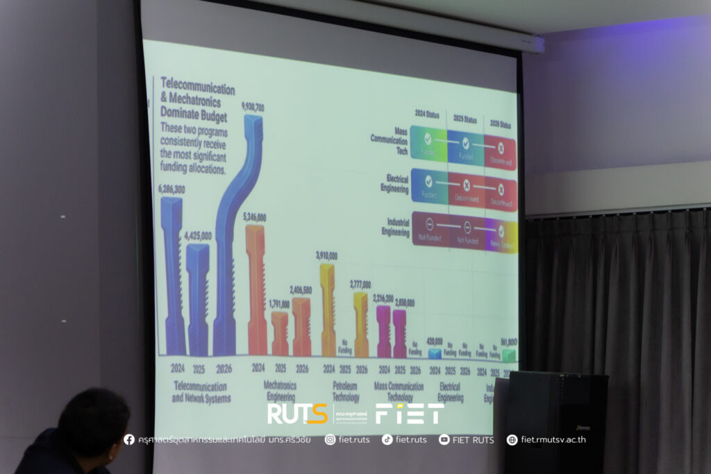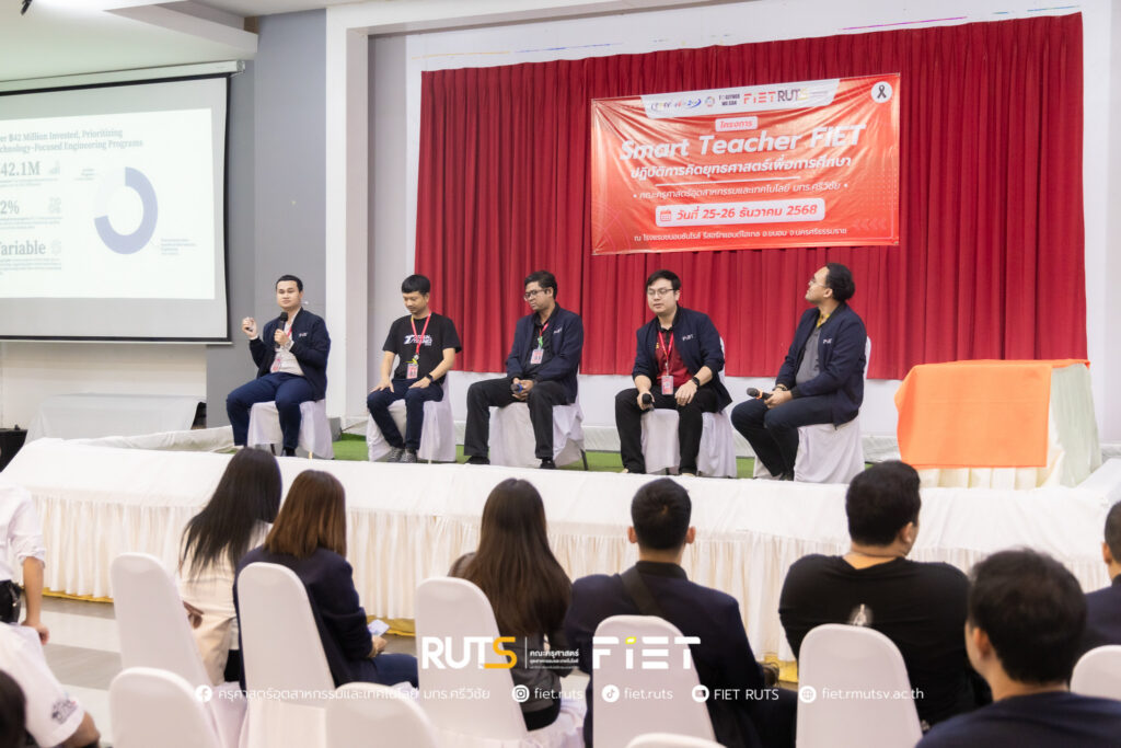 วันที่ 26 ธันวาคม 2568 คณะครุศาสตร์อุตสาหกรรมและเทคโนโลยี มหาวิทยาลัยเทคโนโลยีราชมงคลศรีวิชัย จัดกิจกรรมเสวนาในหัวข้อ “กลยุทธ์ในการจัดหาครุภัณฑ์ที่ตอบโจทย์การจัดการเรียนการสอนสมัยใหม่” ภายใต้โครงการ Smart Teacher FIET: ปฏิบัติการคิดยุทธศาสตร์เพื่อการศึกษา เพื่อแลกเปลี่ยนแนวคิดและแนวทางในการพัฒนาครุภัณฑ์ทางการศึกษาให้สอดคล้องกับบริบทการเรียนการสอนในยุคดิจิทัล