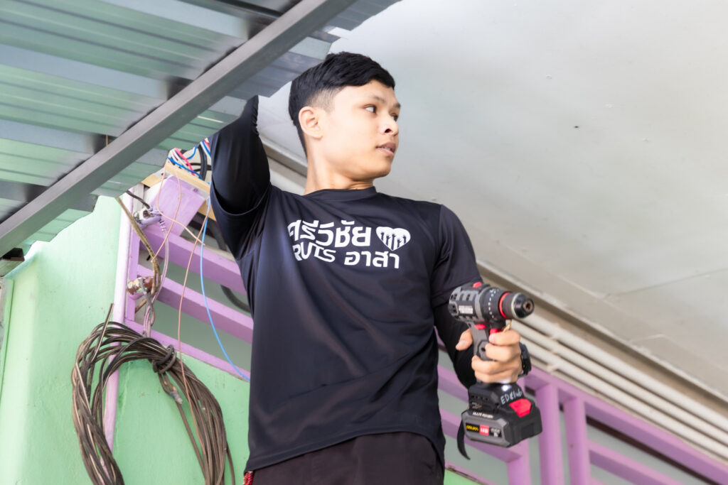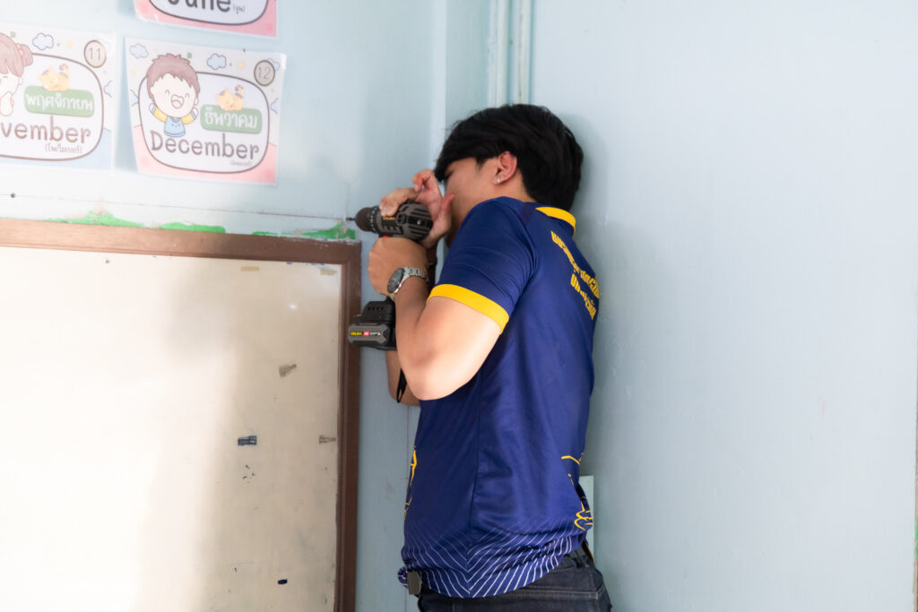 กิจกรรมภายในโครงการได้แบ่งนักศึกษาออกเป็น 5 กลุ่ม เพื่อดำเนินงานซ่อมบำรุงและปรับปรุงอุปกรณ์ไฟฟ้าและสภาพแวดล้อมภายในโรงเรียน ได้แก่