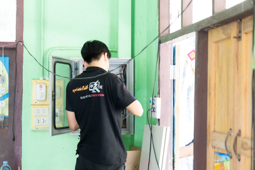 2.กลุ่มซ่อมบำรุงอุปกรณ์ไฟฟ้าภายในอาคารเรียนชั้นอนุบาล และลานอเนกประสงค์