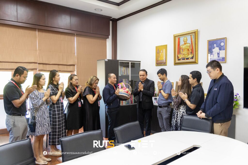 ในการนี้ คณะผู้บริหารและบุคลากรได้มอบกระเช้าผลไม้ เพื่อแสดงความเคารพนับถือและส่งมอบความปรารถนาดีแก่รองอธิการบดี พร้อมทั้งร่วมแลกเปลี่ยนความคิดเห็น แนวคิด และวิสัยทัศน์ในการขับเคลื่อนและพัฒนามหาวิทยาลัยในด้านต่าง ๆ