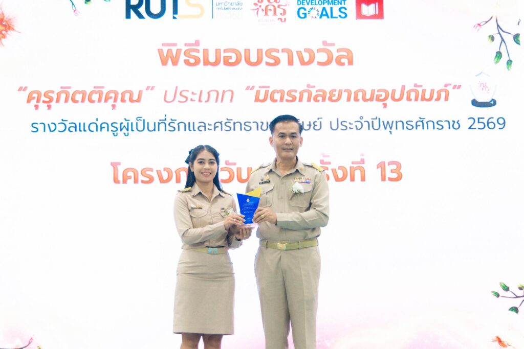 พร้อมกันนี้ มีบุคลากรผู้ได้รับรางวัล โครงการวันครู ครั้งที่ 13 ประจำปี พ.ศ. 2569 รางวัลแด่ครูผู้เป็นที่รักและศรัทธาของศิษย์ ประจำปี พ.ศ. 2569