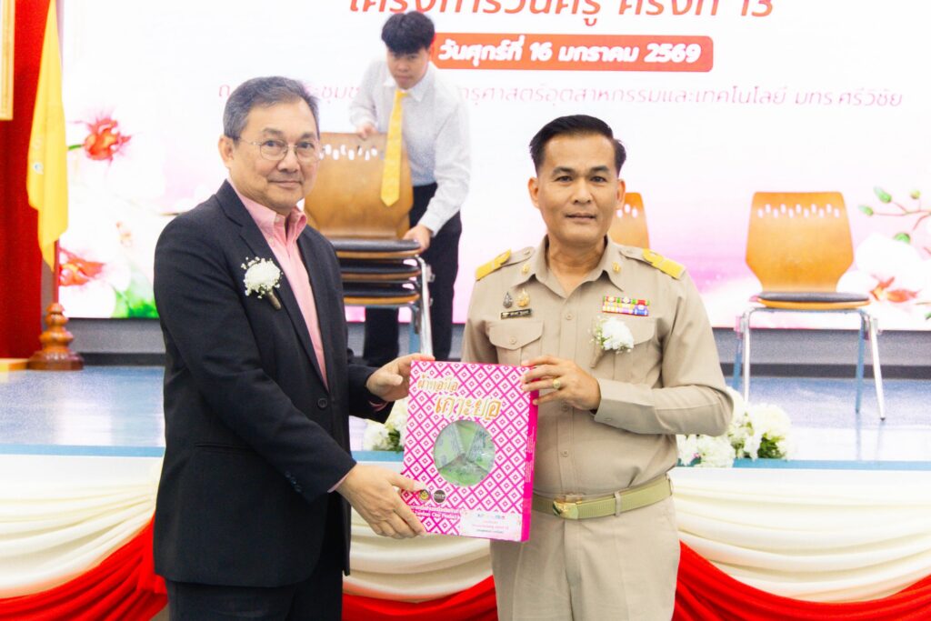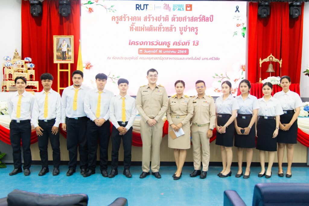 วันนี้ 16 มกราคม 2569 มหาวิทยาลัยเทคโนโลยีราชมงคลศรีวิชัย จัดโครงการวันครู ประจำปี 2569 ต่อเนื่องเป็นปีที่ 13 โดยได้รับเกียรติจาก อาจารย์สถาพร ขุนเพชร รองอธิการบดีมหาวิทยาลัยเทคโนโลยีราชมงคลศรีวิชัย เป็นประธานในพิธีเปิดงาน พร้อมมอบโล่เชิดชูเกียรติแก่คณาจารย์และบุคลากรผู้ทำคุณประโยชน์ทางการศึกษา โดยมี ผู้ช่วยศาสตราจารย์ไชยยะ ธนพัฒน์ศิริ คณบดีคณะครุศาสตร์อุตสาหกรรมและเทคโนโลยี เป็นประธานดำเนินโครงการ ณ ห้องประชุมชูพันธ์ คณะครุศาสตร์อุตสาหกรรมและเทคโนโลยี มทร.ศรีวิชัย