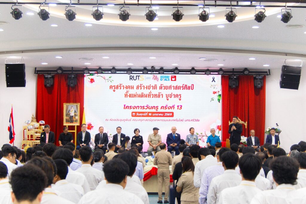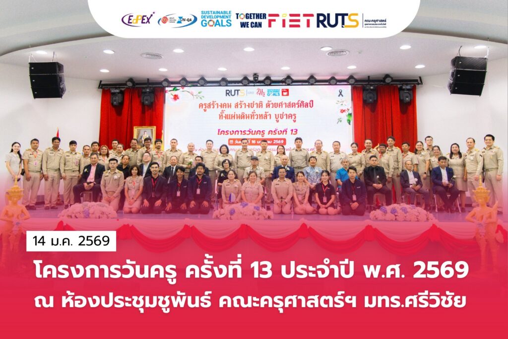 งานวันครู ครั้งที่ 13 มทร.ศรีวิชัย ประจำปี 2569 นับเป็นอีกหนึ่งกิจกรรมดีๆ ที่สะท้อนถึงความมุ่งมั่นของมหาวิทยาลัยในการพัฒนาการศึกษาอย่างยั่งยืน พร้อมทั้งเป็นการเชิดชูเกียรติ สร้างขวัญและกำลังใจแก่คณาจารย์ เปิดโอกาสให้นักศึกษาและบุคลากรได้แสดงความกตัญญูกตเวทีต่อครูอาจารย์ รวมถึงเป็นเวทีแลกเปลี่ยนองค์ความรู้และประสบการณ์ อันจะนำไปสู่การพัฒนาคุณภาพการเรียนการสอนและการวิจัย โดยมีคณาจารย์เป็นผู้ชี้นำและร่วมสร้างสรรค์ของอนาคต