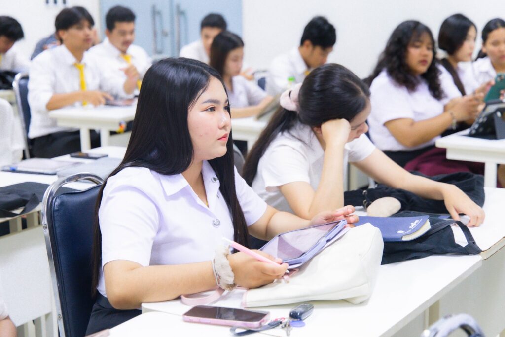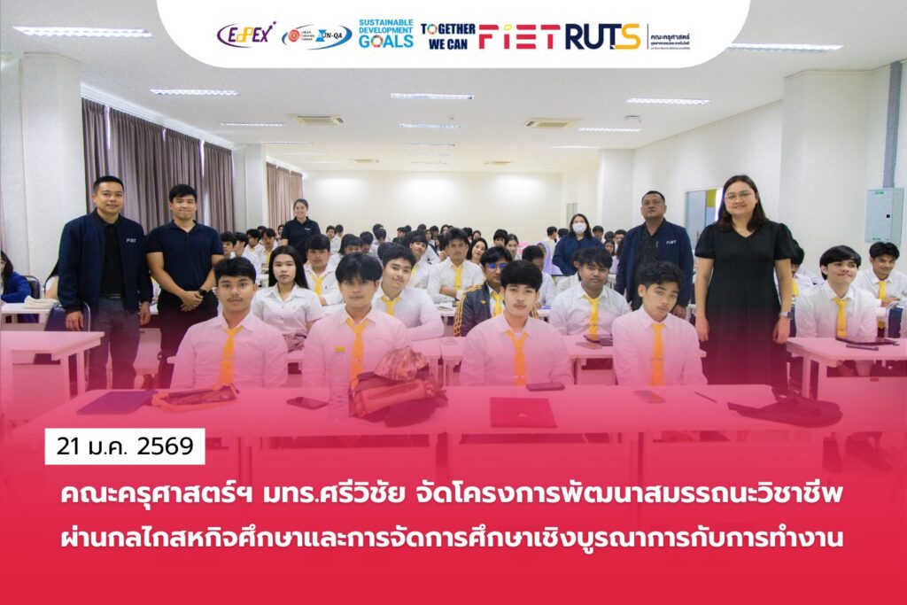 วันที่ 21 มกราคม 2569 คณะครุศาสตร์อุตสาหกรรมและเทคโนโลยี จัดโครงการพัฒนาสมรรถนะวิชาชีพผ่านกลไกสหกิจศึกษาและการจัดการศึกษาเชิงบูรณาการกับการทำงาน เพื่อเตรียมความพร้อมด้านทักษะวิชาชีพให้แก่นักศึกษา โดยจัดกิจกรรมที่ 2 ภายใต้หัวข้อ “การเสริมสร้างสมรรถนะวิชาชีพครู” โดยมีผู้ช่วยศาสตราจารย์ฤทัย ประทุมทอง หัวหน้าหน่วยฝึกประสบการณ์และสหกิจศึกษา ให้เกียรติกล่าวเปิดโครงการ พร้อมด้วยอาจารย์ นักศึกษาหลักสูตรสาขาวิชาวิศวกรรมอุตสาหการ หลักสูตรสาขาวิชาวิศวกรรมเมคคาทรอนิกส์ และหลักสูตรสาขาวิชาวิศวกรรมไฟฟ้า เข้าร่วมกิจกรรม ณ ห้องประชุมทิพย์วารี ชั้น 9 คณะครุศาสตร์อุตสาหกรรมและเทคโนโลยี
