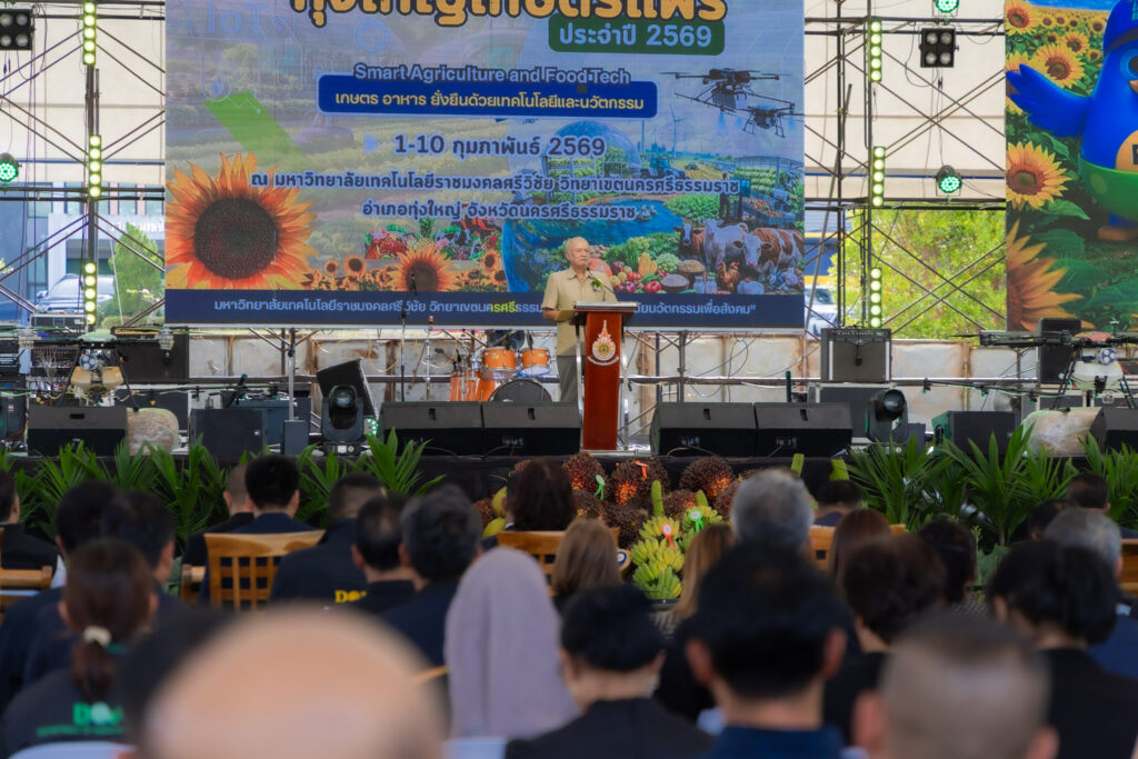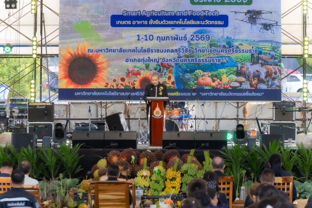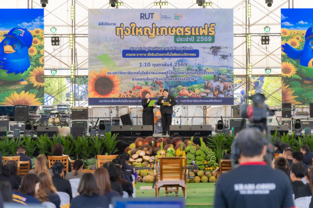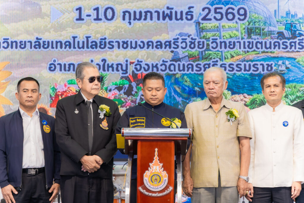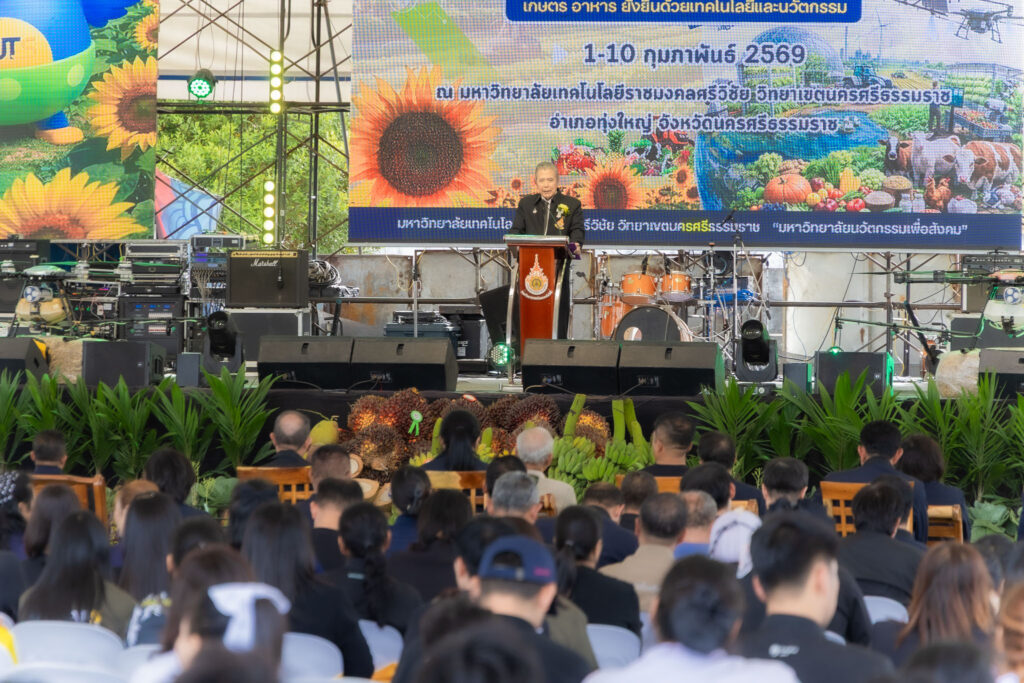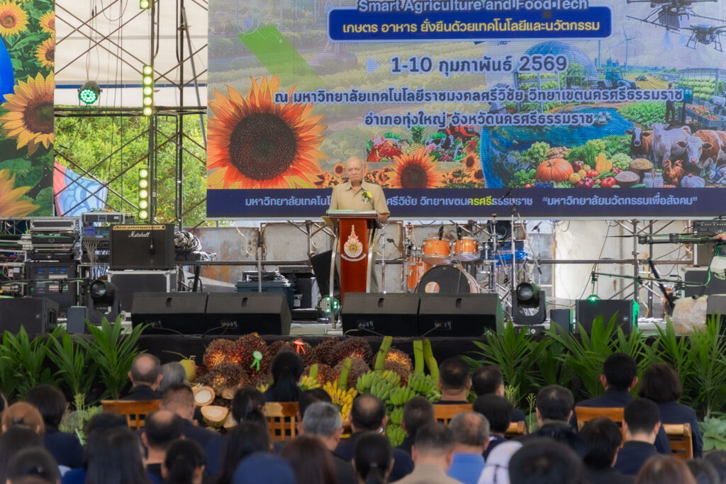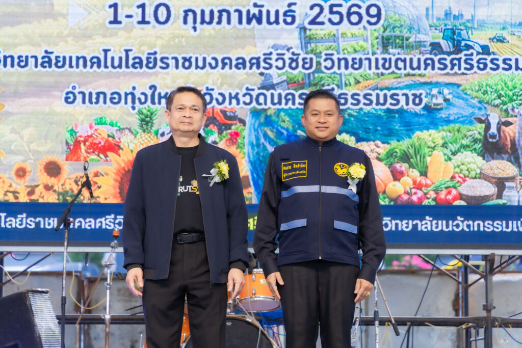 วันที่ 4 กุมภาพันธ์ 2569 คณะครุศาสตร์อุตสาหกรรมและเทคโนโลยี มหาวิทยาลัยเทคโนโลยีราชมงคลศรีวิชัย นำโดย ผู้ช่วยศาสตราจารย์ไชยยะ ธนพัฒน์ศิริ คณบดีคณะครุศาสตร์อุตสาหกรรมและเทคโนโลยี พร้อมด้วยผู้บริหารและบุคลากร เข้าร่วมพิธีเปิดงาน “ทุ่งใหญ่เกษตรแฟร์” ประจำปี 2569 จัดขึ้นภายใต้แนวคิด “เกษตร อาหาร ยั่งยืนด้วยเทคโนโลยีและนวัตกรรม” Smart Agriculture and Food Tech สำหรับพิธีเปิดงานทุ่งใหญ่เกษตรแฟร์ ประจำปี 2569 ได้รับเกียรติจาก นายสมชาย ลีหล้าน้อย ผู้ว่าราชการจังหวัดนครศรีธรรมราช เป็นประธานในพิธีเปิด พร้อมกันนี้ ศาสตราจารย์กิตติคุณ ดร.เปี่ยมศักดิ์ เมนะเศวต นายกสภามหาวิทยาลัยเทคโนโลยีราชมงคลศรีวิชัย และ รองศาสตราจารย์ประชีพ ชูพันธ์ อดีตอธิการมหาวิทยาลัยเทคโนโลยีราชมงคลศรีวิชัย กล่าวต้อนรับ หัวหน้าส่วนราชการประจำจังหวัด ประจำอำเภอ ผู้แทนหน่วยงานภาครัฐ ภาคเอกชน ผู้บริหารสถาบันการศึกษา คณะครูอาจารย์ นักศึกษาและประชาชนที่เข้าร่วมงาน ณ มหาวิทยาลัยเทคโนโลยีราชมงคลศรีวิชัย วิทยาเขตนครศรีธรรมราช พื้นที่ทุ่งใหญ่ อ.ทุ่งใหญ่ จ.นครศรีธรรมราช