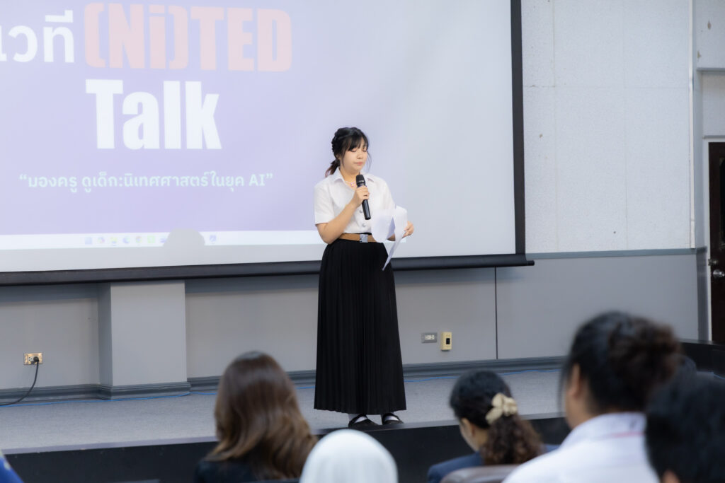 ต่อด้วยเวที (Ni)TEDe Talk ภายใต้หัวข้อ “มองครู ดูเด็ก: นิเทศศาสตร์ในยุค AI” เปิดพื้นที่ให้นักศึกษาจาก 7 สถาบันนำเสนอแนวคิดแบบ Pitching ภายใน 7 นาที และกิจกรรม Student Showcase: Comm Arts Playground จัดแสดงผลงานสร้างสรรค์ของนักศึกษาจากเครือข่ายทั้ง 7 มหาวิทยาลัย