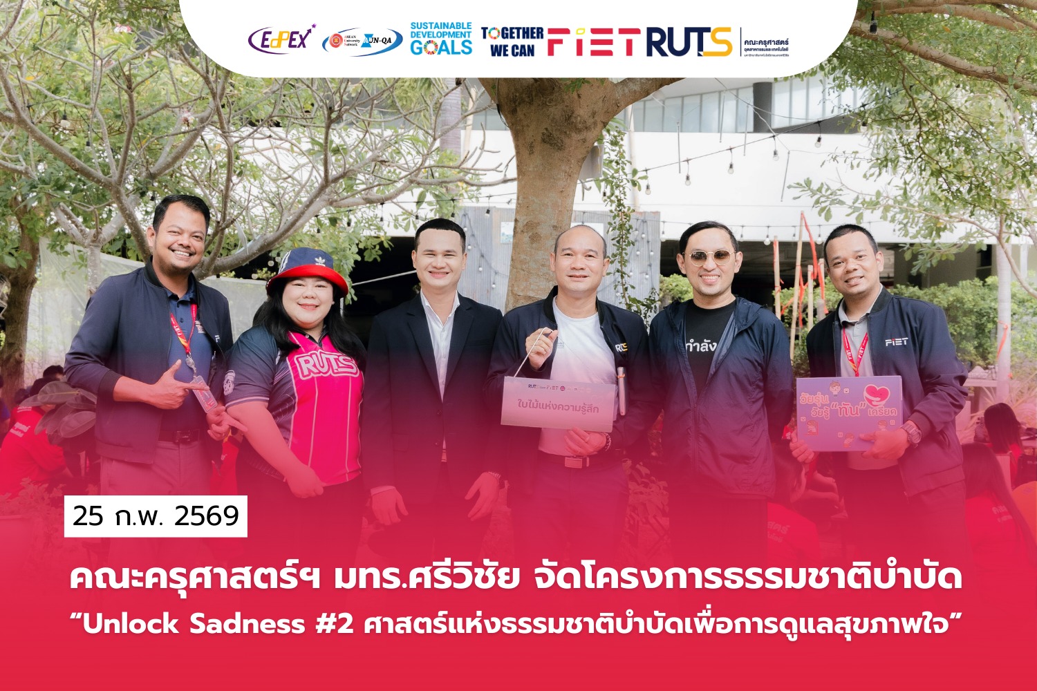 วันนี้ 25 กุมภาพันธ์ 2569 คณะครุศาสตร์อุตสาหกรรมและเทคโนโลยี มทร.ศรีวิชัย จัดโครงการธรรมชาติบำบัด Unlock Sadness #2” ภายใต้หัวข้อ “ศาสตร์แห่งธรรมชาติบำบัดเพื่อการดูแลสุขภาพใจ” โดยได้รับความร่วมมือจาก KIDDEE iDOL และ นิตยสารสารคดี ร่วมถ่ายทอดองค์ความรู้และประสบการณ์ เพื่อชวนนักศึกษากลับมา “พักใจ” ผ่านการสัมผัสและเชื่อมโยงกับธรรมชาติ อันเป็นแนวทางหนึ่งในการฟื้นฟูสุขภาวะทางจิต สร้างสมดุลทางอารมณ์ และเสริมสร้างพลังบวกในการดำเนินชีวิต