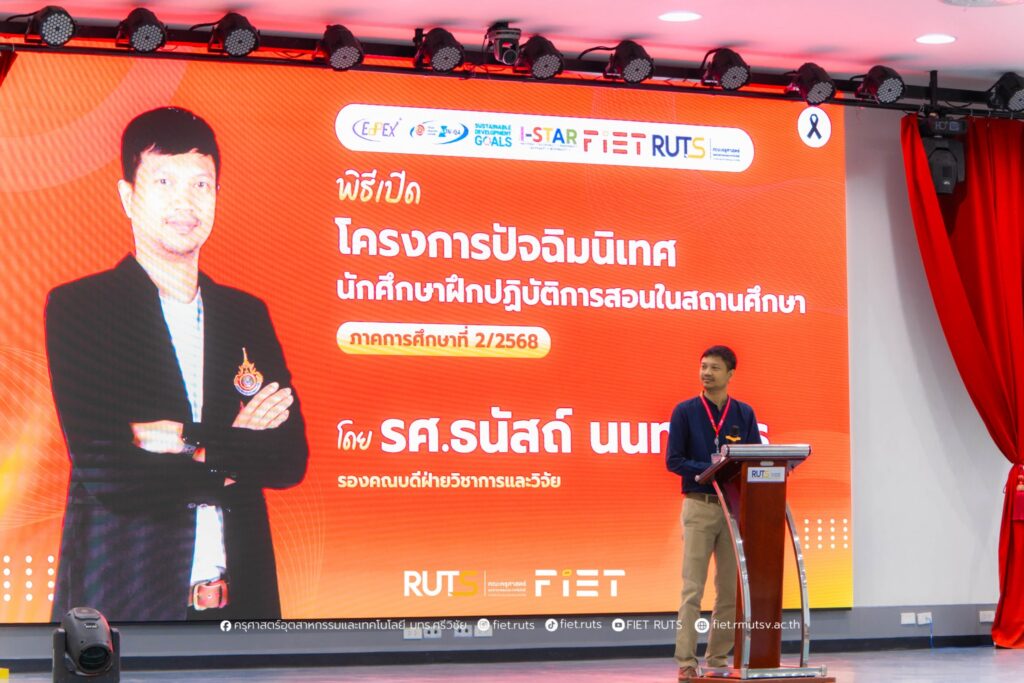 วันนี้ 4 มีนาคม 2569 คณะครุศาสตร์ฯ จัดโครงการปัจฉิมนิเทศนักศึกษาฝึกปฏิบัติการสอนในสถานศึกษา ภาคการศึกษาที่ 2/2568 ในการนี้ รองศาสตราจารย์ ดร.ธนัสถ์ นนทพุทธ รองคณบดีฝ่ายวิชาการและวิจัย ให้เกียรติเป็นประธานกล่าวเปิดโครงการ และผู้ช่วยศาสตราจารย์ฤทัย ประทุมทอง หัวหน้าหน่วยฝึกประสบการณ์และสหกิจศึกษา กล่าวรายงานวัตถุประสงค์การจัดงาน พร้อมด้วยผู้บริหาร อาจารย์ และนักศึกษาสูตรสาขาวิชาวิศวกรรมอุตสาหการ สูตรสาขาวิชาวิศวกรรมไฟฟ้า และหลักสูตรสาขาวิชาวิศวกรรมเมคคาทรอนิกส์ เข้าร่วม ณ ห้องประชุมชูพันธ์ คณะครุศาสตร์อุตสาหกรรมและเทคโนโลยี