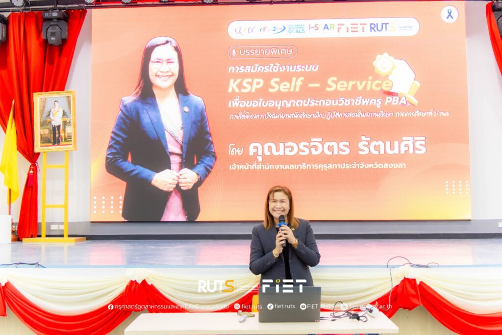 ภายในงานได้รับเกียรติจาก คุณอรจิตร รัตนศิริ เจ้าหน้าที่สำนักงานเลขาธิการคุรุสภา ประจำจังหวัดสงขลา บรรยายพิเศษในหัวข้อ “การสมัครใช้งานระบบ KSP Self–Service เพื่อขอใบอนุญาตประกอบวิชาชีพครู (PBA)” เพื่อสร้างความเข้าใจเกี่ยวกับขั้นตอนและกระบวนการยื่นคำขอใบอนุญาตประกอบวิชาชีพครูอย่างถูกต้องตามหลักเกณฑ์ของคุรุสภา พร้อมทั้งการบรรยายหัวข้อ “Smart Resume สร้างโปรไฟล์ให้ปัง ก่อนก้าวสู่สนามจริง” โดย ผู้ช่วยศาสตราจารย์กฤษฎา คงพูน ประธานหลักสูตรสาขาวิชาวิศวกรรมอุตสาหการ ที่ได้ถ่ายทอดแนวทางการจัดทำเรซูเม่และการเตรียมตัวสมัครงานอย่างมืออาชีพ
