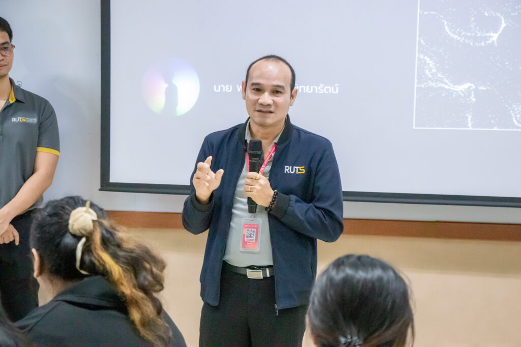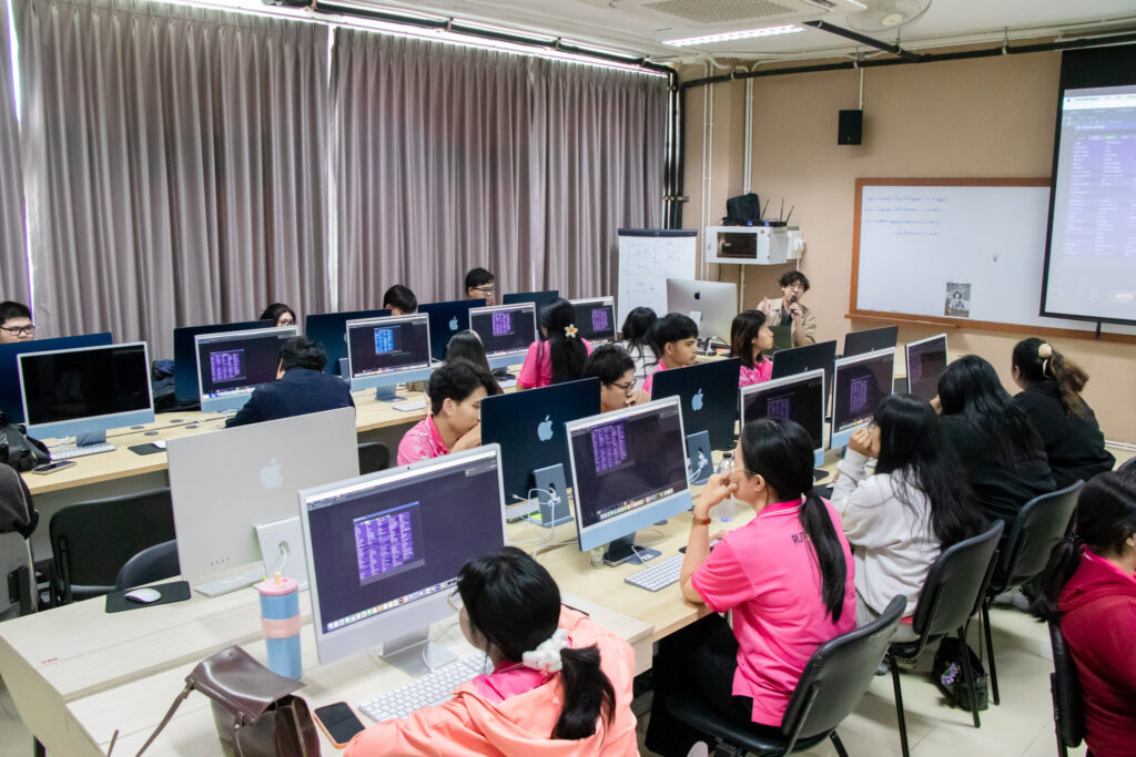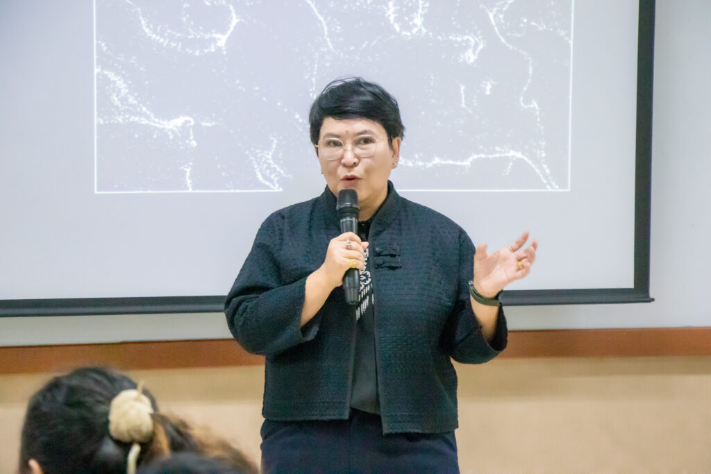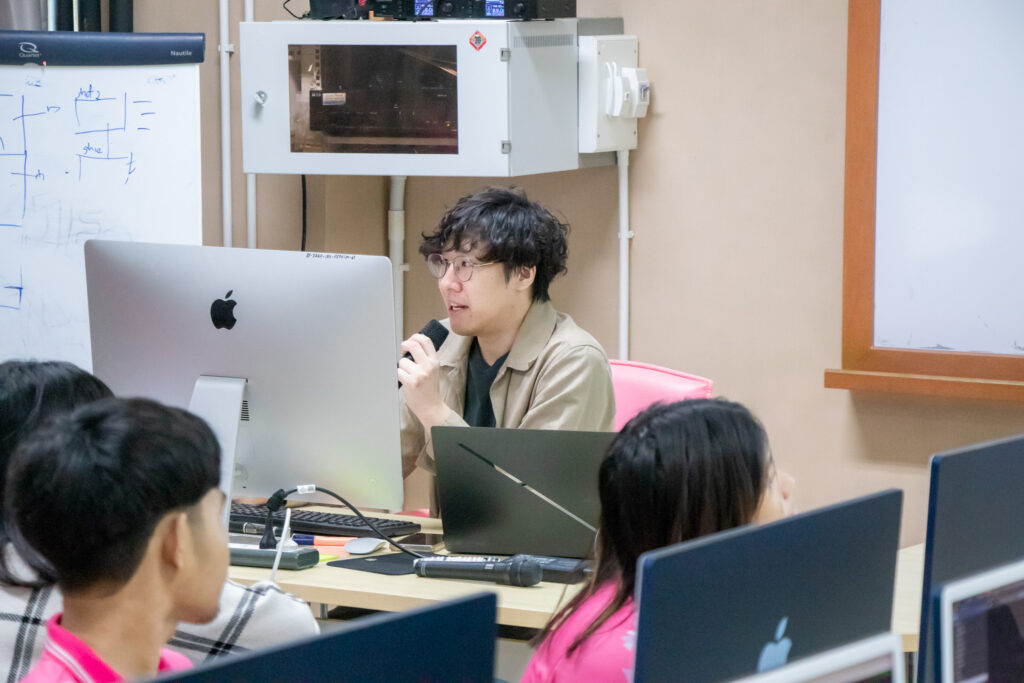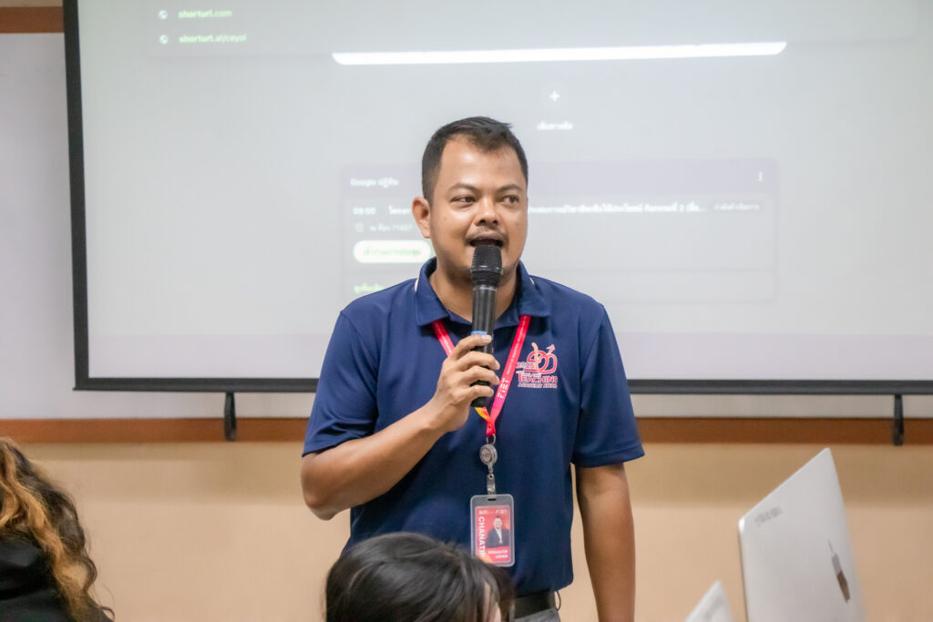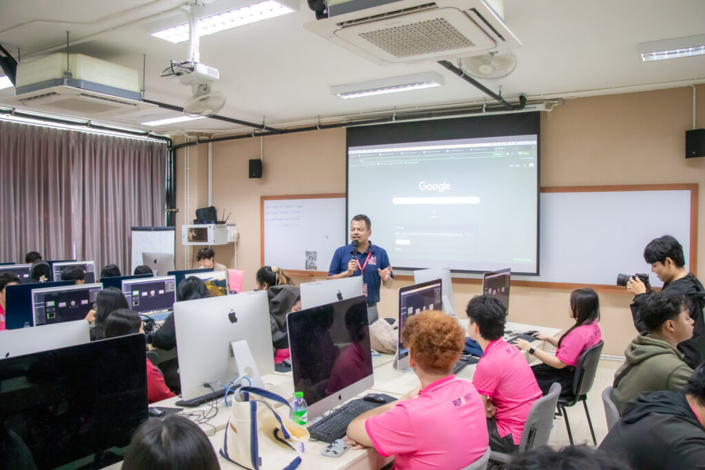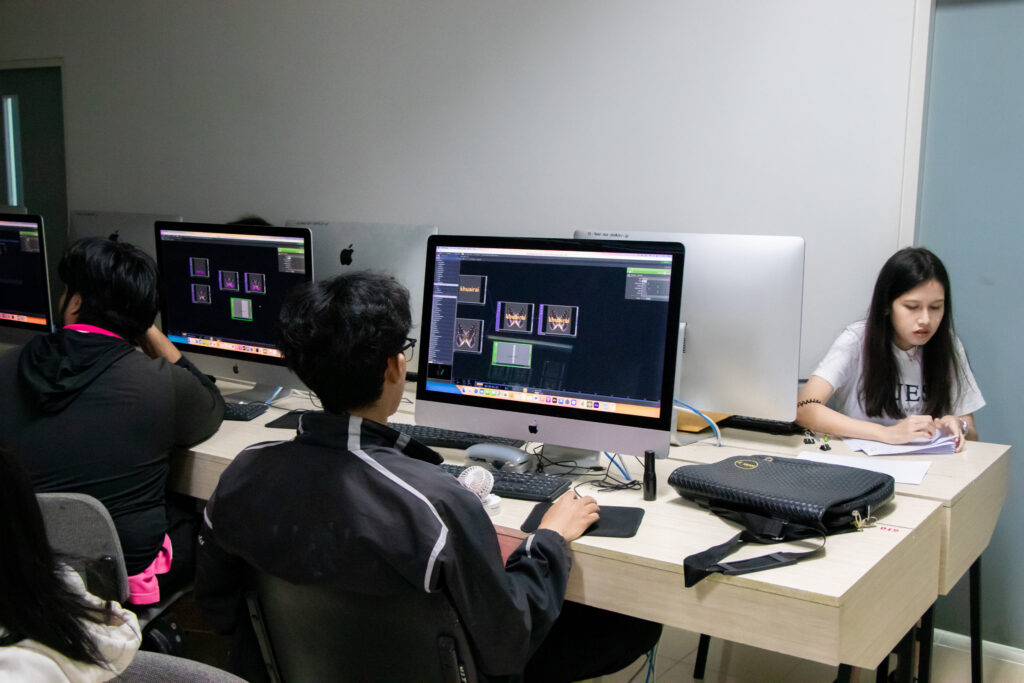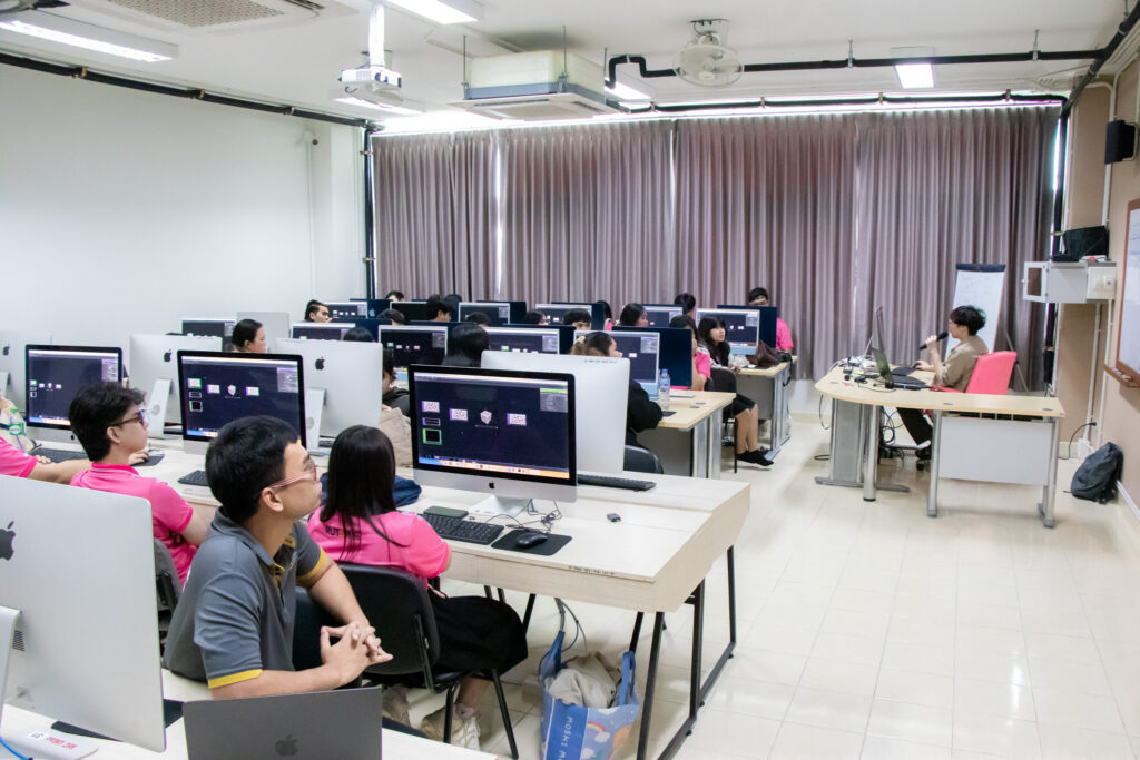 ภายในกิจกรรมได้รับเกียรติจากคุณพลท พิธานพิทยารัตน์ วิทยากร ให้ความรู้ในด้านการออกแบบสื่อปฏิสัมพันธ์และการสร้างสรรค์สื่อดิจิทัลด้วยโปรแกรม TouchDesigner หลักการเบื้องต้นของ Visual Programming และการใช้งานโปรแกรม TouchDesigner การทำความเข้าใจโครงสร้าง Operator ทั้ง 5 ประเภท ได้แก่ TOP, CHOP, SOP, DAT และ COMP รวมถึงการบริหารจัดการสัญญาณและการเชื่อมต่อโหนด (Signal Flow and Linkage) จากนั้นเป็นการเรียนรู้การใช้เครื่องมือพื้นฐานของโปรแกรมเพื่อจัดการสัญญาณและระบบการทำงานของโหนด การเรียนรู้กระบวนการ สร้างสรรค์ทัศนภาพจากอัลกอริทึม (Generative Visuals) อาทิ การสร้าง Noise และ Feedback Loop เพื่อพัฒนารูปแบบงานทัศนศิลป์ดิจิทัล รวมถึงการวิเคราะห์และปรับเปลี่ยนค่าพารามิเตอร์ (Parameter Modulation) เพื่อควบคุมรูปแบบการแสดงผลของภาพอย่างสร้างสรรค์