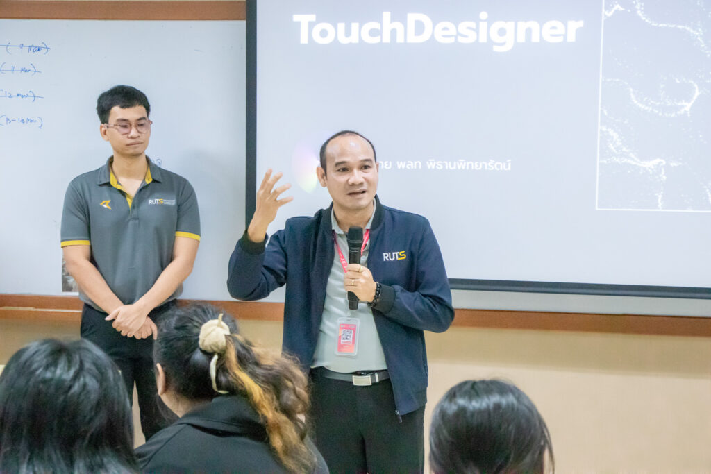 ได้รับเกียรติจาก ผู้ช่วยศาสตราจารย์ไชยะ ธนพัฒน์ศิริ คณบดีคณะครุศาสตร์อุตสาหกรรมและเทคโนโลยี เป็นประธานเปิดโครงการ พร้อมด้วยคณาจารย์และผู้เข้าร่วมการอบรมเข้าร่วมกิจกรรม โดยมี นายพลท พิธานพิทยารัตน์ เป็นวิทยากรให้ความรู้ด้านการออกแบบสื่อปฏิสัมพันธ์และการสร้างสรรค์สื่อดิจิทัลด้วยโปรแกรม TouchDesigner