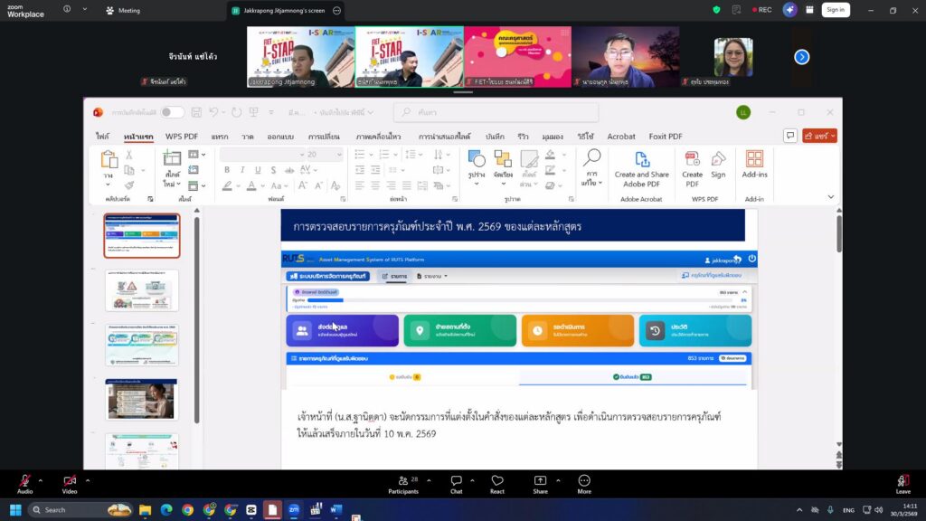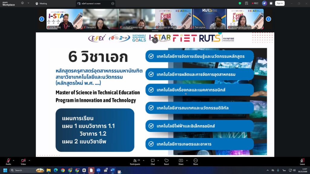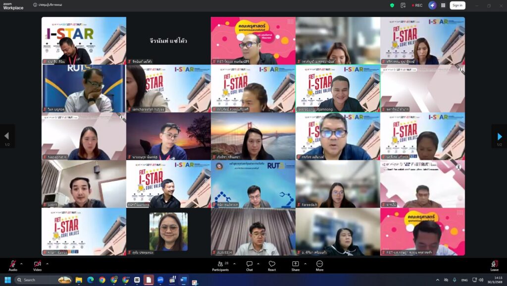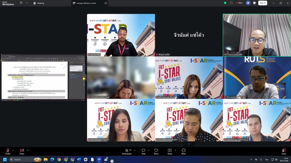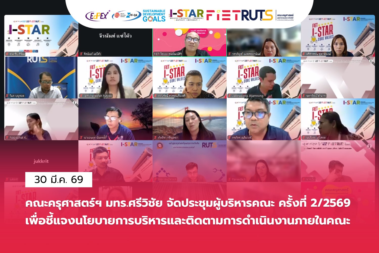 วันที่ 30 มีนาคม 2569 คณะครุศาสตร์อุตสาหกรรมและเทคโนโลยี มทร.ศรีวิชัย จัดการประชุมผู้บริหารคณะ ครั้งที่ 2/2569 โดยผู้ช่วยศาสตราจารย์ไชยยะ ธนพัฒน์ศิริ คณบดีคณะครุศาสตร์อุตสาหกรรมและเทคโนโลยี เป็นประธานการประชุม พร้อมด้วยผู้บริหารและบุคลากรเข้าร่วมการประชุมผ่านระบบออนไลน์ Zoom Cloud Meetings