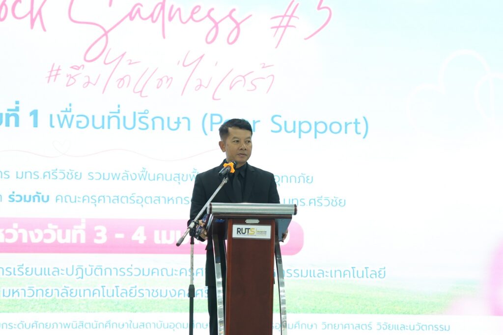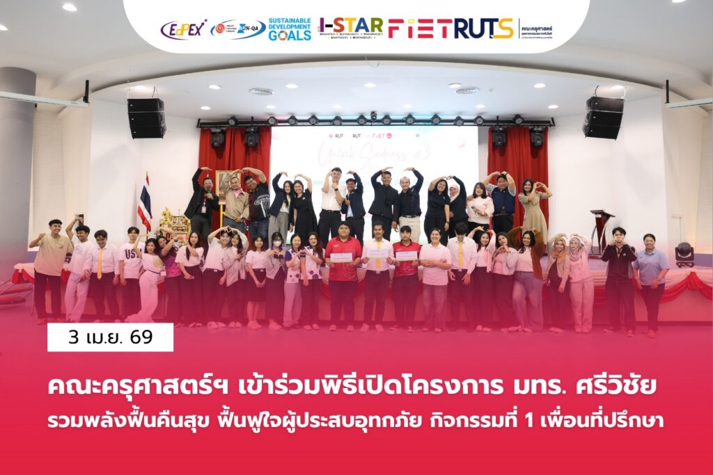 วันนี้ 3 เมษายน 2569 คณะครุศาสตร์อุตสาหกรรมและเทคโนโลยี มทร.ศรีวิชัย นำโดย ผู้ช่วยศาสตราจารย์ไชยยะ ธนพัฒน์ศิริ คณบดีคณะครุศาสตร์อุตสาหกรรมและเทคโนโลยี พร้อมด้วย นายอาลาวีย์ ฮะซานี รองคณบดีฝ่ายพัฒนานักศึกษา บุคลากรฝ่ายพัฒนานักศึกษา ผู้นำนักศึกษาสโมสรคณะครุศาสตร์ฯ และนักศึกษาจากคณะอื่นภายในมหาวิทยาลัย เข้าร่วมพิธีเปิดโครงการ “มทร. ศรีวิชัย รวมพลังฟื้นคืนสุข ฟื้นฟูใจผู้ประสบอุทกภัย” กิจกรรมที่ 1 เพื่อนที่ปรึกษา (Peer Support) ณ ห้องประชุมชูพันธ์ คณะครุศาสตร์อุตสาหกรรมและเทคโนโลยี มทร.ศรีวิชัย