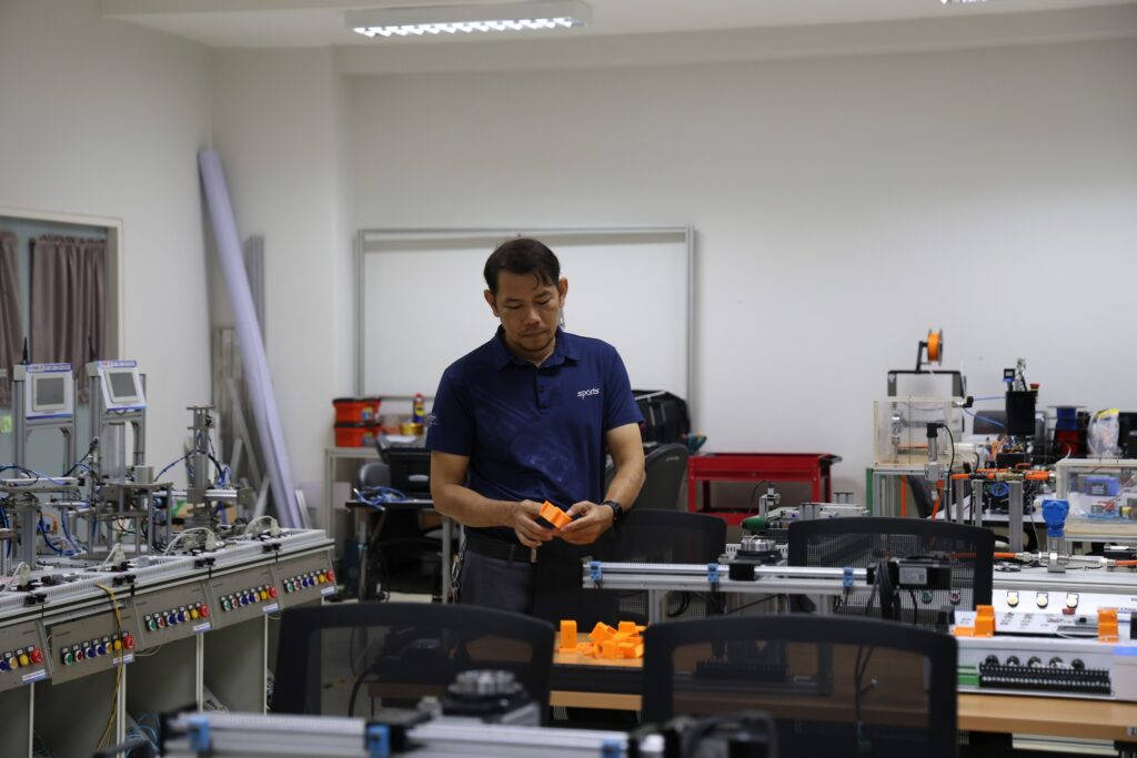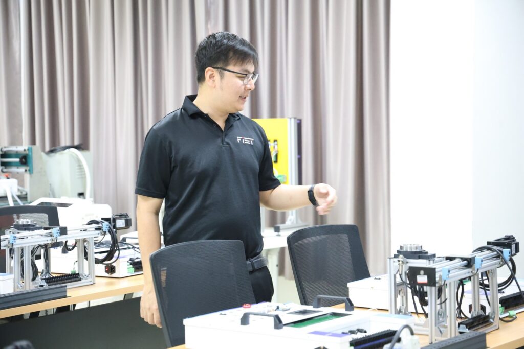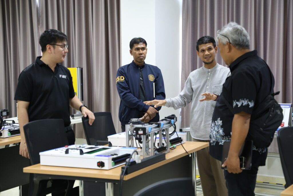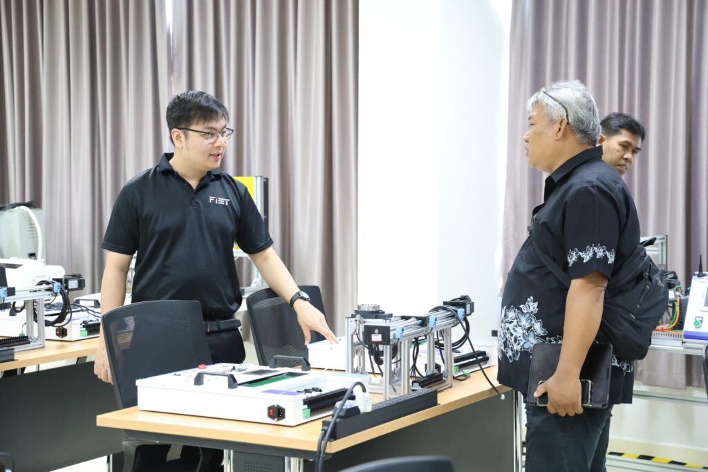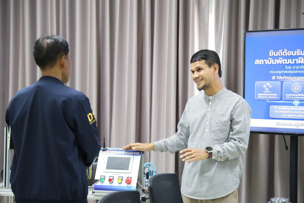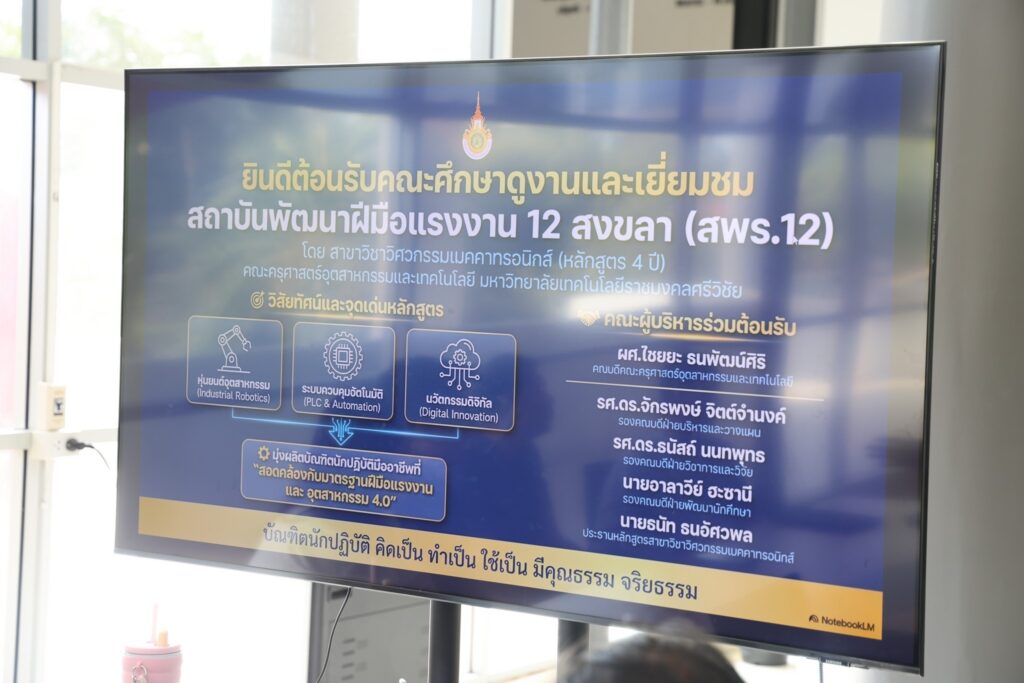 ในการนี้ ผู้ช่วยศาสตราจารย์ไชยยะ ธนพัฒน์ศิริ คณบดีคณะครุศาสตร์อุตสาหกรรมและเทคโนโลยี พร้อมด้วยนายธนัท ธนอัศวพล ประธานหลักสูตรสาขาวิชาวิศวกรรมเมคคาทรอนิกส์ และอาจารย์ประจำหลักสูตร ร่วมให้การต้อนรับอย่างพร้อมเพียง พร้อมนำเสนอข้อมูลหลักสูตร แนวทางการจัดการเรียนการสอน ตลอดจนศักยภาพของห้องปฏิบัติการที่สนับสนุนการเรียนรู้เชิงปฏิบัติ