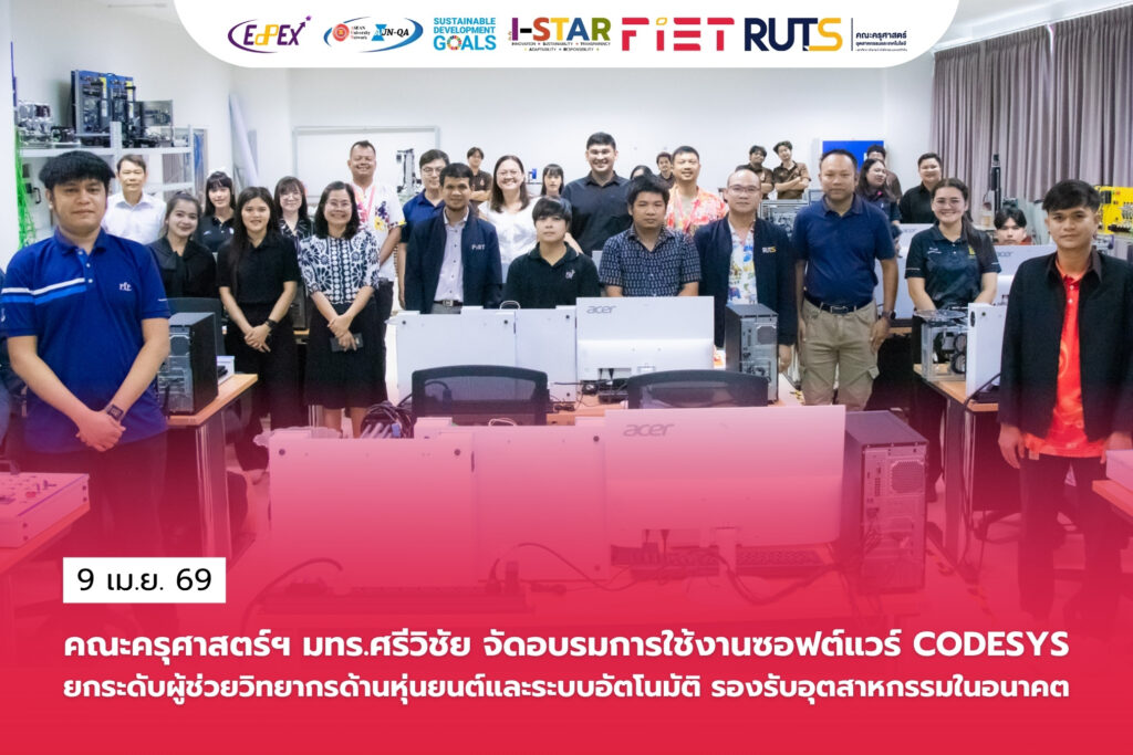 วันที่ 9 เมษายน 2569 คณะครุศาสตร์อุตสาหกรรมและเทคโนโลยี มหาวิทยาลัยเทคโนโลยีราชมงคลศรีวิชัย จัดโครงการ “เตรียมความพร้อมผู้ช่วยวิทยากรในการฝึกอบรมและบริการวิชาการด้านระบบอัตโนมัติและหุ่นยนต์ด้วยโปรแกรม CODESYS” โดยได้รับเกียรติจากผู้ช่วยศาสตราจารย์ไชยยะ ธนพัฒน์ศิริ คณบดีคณะครุศาสตร์อุตสาหกรรมและเทคโนโลยี เป็นประธานเปิดโครงการ ณ ห้องปฏิบัติการ 71607 อาคารเรียนและปฏิบัติการรวม