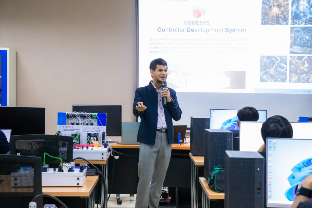 การจัดโครงการครั้งนี้ได้รับความร่วมมือจากภาคเอกชน ได้แก่ บริษัท อี พาวเวอร์ เซอร์วิส จำกัด ซึ่งเล็งเห็นถึงความสำคัญของการพัฒนากำลังคนด้านระบบอัตโนมัติ และสนับสนุนการฝึกอบรมเพื่อเตรียมบุคลากรให้สามารถปฏิบัติหน้าที่เป็นผู้ช่วยวิทยากรได้อย่างมีประสิทธิภาพ กิจกรรมภายในโครงการประกอบด้วยทั้งภาคทฤษฎีและภาคปฏิบัติ อาทิ แนวคิดระบบควบคุมอัตโนมัติในงานอุตสาหกรรม การใช้งานซอฟต์แวร์ CODESYS การเขียนโปรแกรมควบคุมพื้นฐาน การเชื่อมต่ออุปกรณ์ภาคสนาม ตลอดจนการพัฒนาระบบอัตโนมัติและหุ่นยนต์ โดยมี ผู้ช่วยศาสตราจารย์อรุณ สุขแก้ว อาจารย์ประจำหลักสูตรสาขาวิชาวิศวกรรมเมคคาทรอนิกส์ เป็นวิทยากรหลักในการถ่ายทอดองค์ความรู้ ซึ่งจะเป็นการยกระดับศักยภาพบุคลากรด้านเทคโนโลยีอุตสาหกรรม และส่งเสริมบทบาทของมหาวิทยาลัยในการให้บริการวิชาการแก่สังคมและภาคอุตสาหกรรมอย่างเป็นรูปธรรม อีกทั้งยังช่วยเตรียมความพร้อมกำลังคนให้สามารถรองรับการเปลี่ยนแปลงของเทคโนโลยีในอนาคตได้อย่างมีประสิทธิภาพ