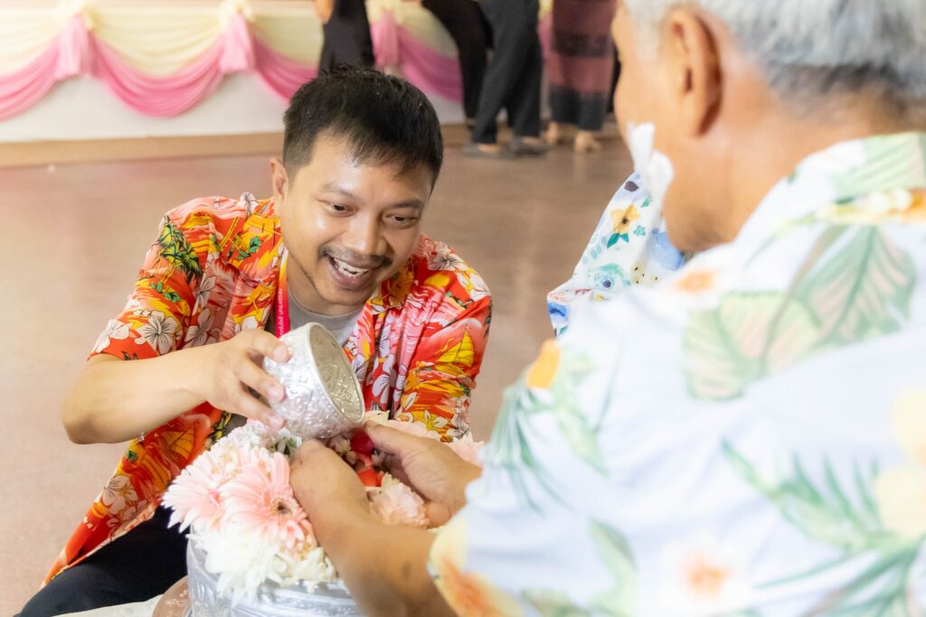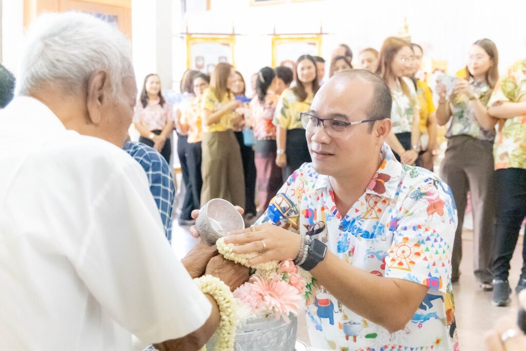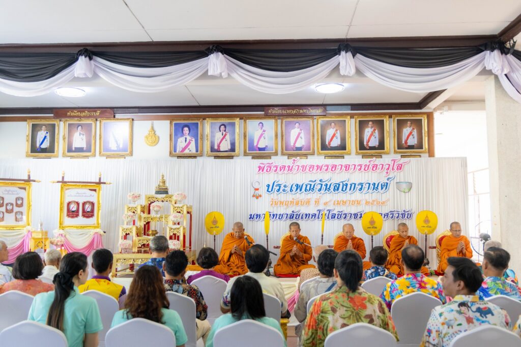 🔹พิธีรดน้ำขอพร: สมาชิกชาว มทร.ศรีวิชัย ร่วมใจกันสรงน้ำพระพุทธรูป และรดน้ำขอพรอาจารย์อาวุโสทั้ง 5 ท่าน ได้แก่: