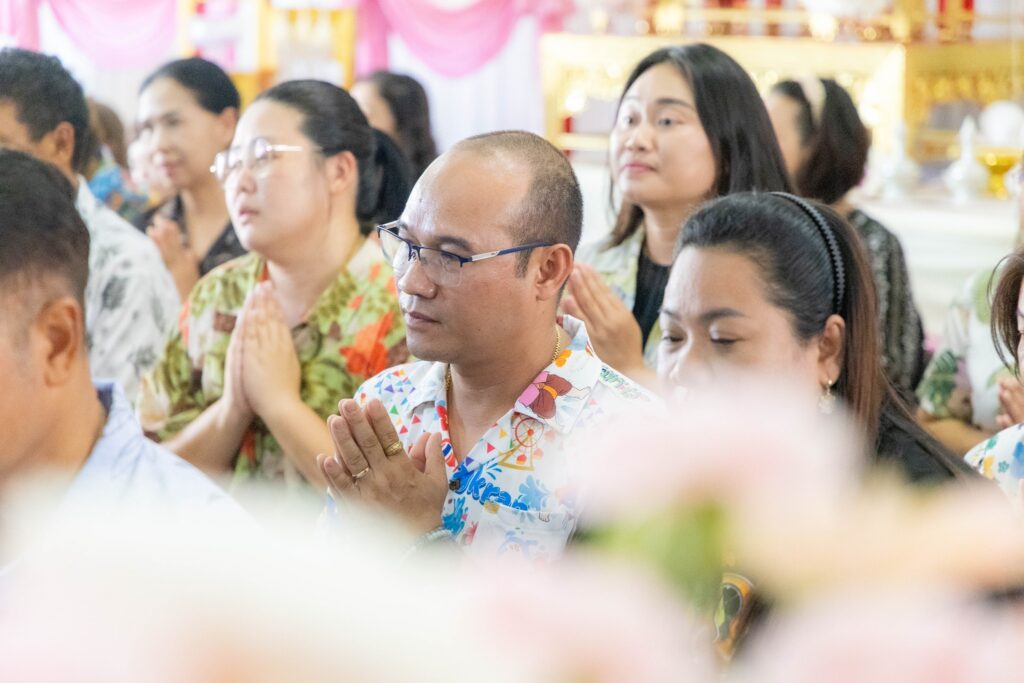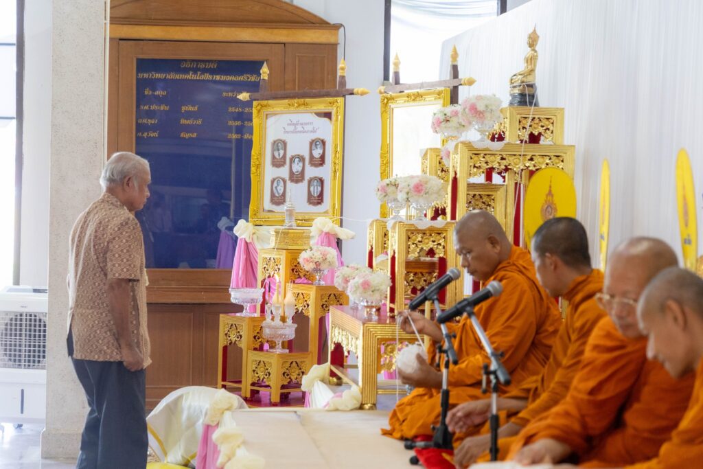 🔹ช่วงเช้า: ผู้บริหาร บุคลากร และนักศึกษา ร่วมพิธีทางศาสนาเพื่อความเป็นสิริมงคล มีการทอดผ้าไตรบังสุกุล และถวายเครื่องไทยธรรมแด่พระสงฆ์