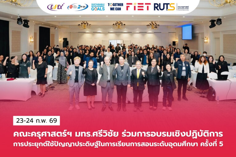 17 คณะครุศาสตร์ฯ มทร.ศรีวิชัย ร่วมการอบรมเชิงปฏิบัติการ การประยุกต์ใช้ปัญญาประดิษฐ์ในการเรียนการสอนระดับอุดมศึกษา ครั้งที่ 5กุมภาพันธ์ 23, 2026มีนาคม 10, 2026