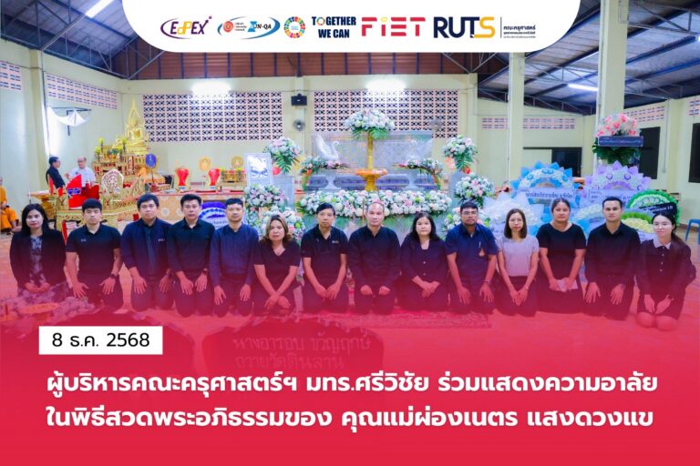 11 ผู้บริหารคณะครุศาสตร์ฯ มทร.ศรีวิชัย ร่วมแสดงความอาลัย ในพิธีสวดพระอภิธรรมของ คุณแม่ผ่องเนตร แสงดวงแขธันวาคม 8, 2025กุมภาพันธ์ 9, 2026