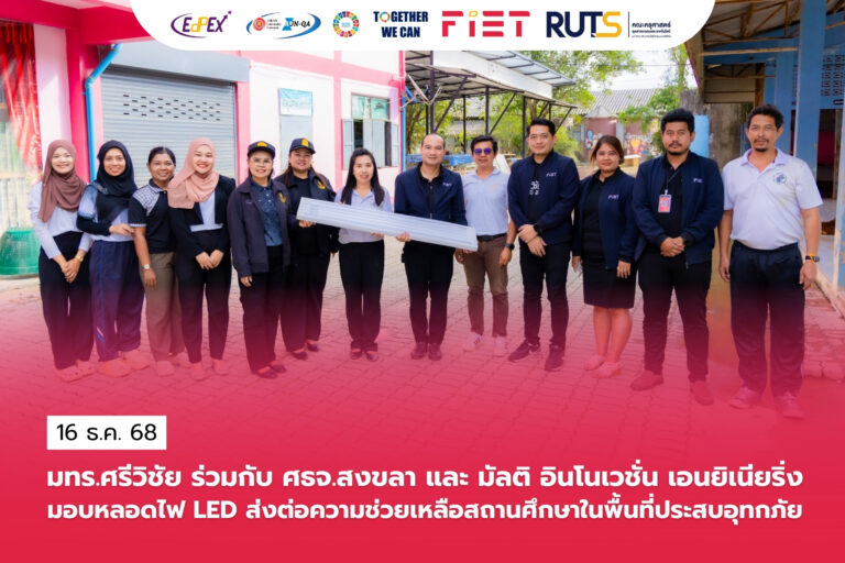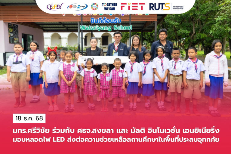 11 มทร.ศรีวิชัย ร่วมกับ ศธจ.สงขลา และ มัลติ อินโนเวชั่น เอนยิเนียริ่ง มอบหลอดไฟ LED ส่งต่อความช่วยเหลือแก่สถานศึกษาในพื้นที่ประสบอุทกภัยธันวาคม 22, 2025กุมภาพันธ์ 9, 2026