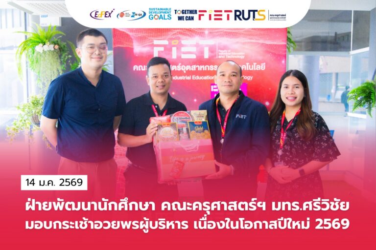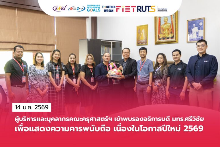 ข่าวประชาสัมพันธ์ ผู้บริหารและบุคลากรคณะครุศาสตร์อุตสาหกรรมและเทคโนโลยี เข้าพบรองอธิการบดี มทร.ศรีวิชัย เนื่องในโอกาสปีใหม่ 2569มกราคม 14, 2026กุมภาพันธ์ 10, 2026