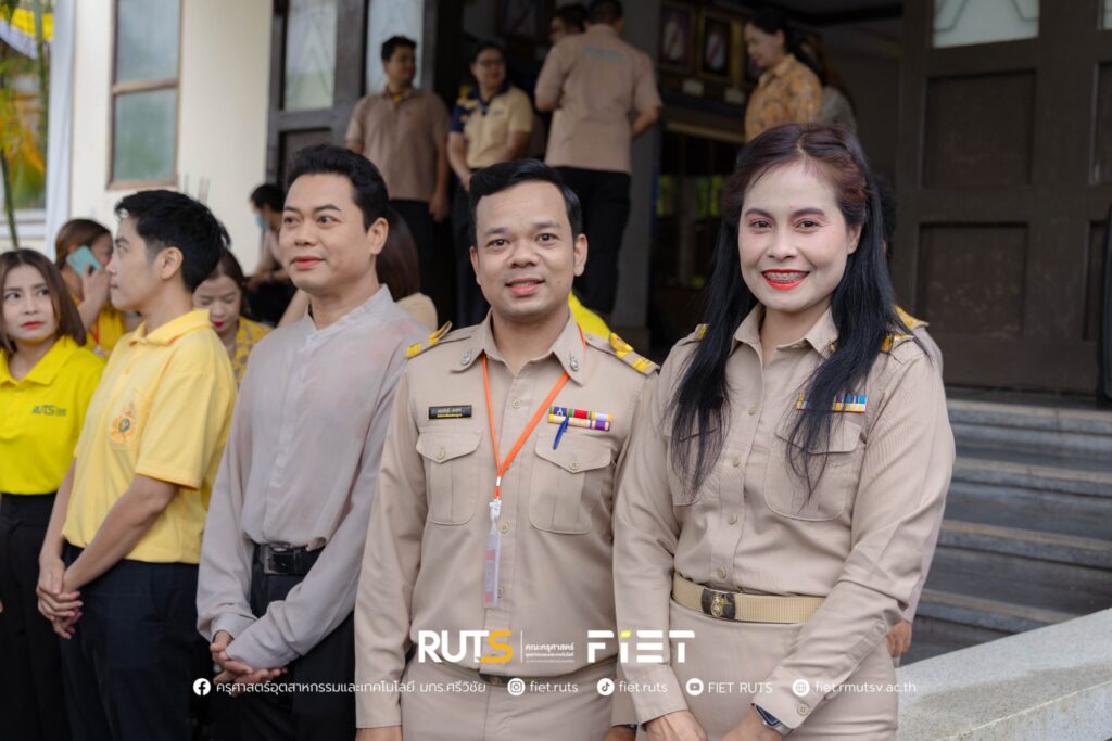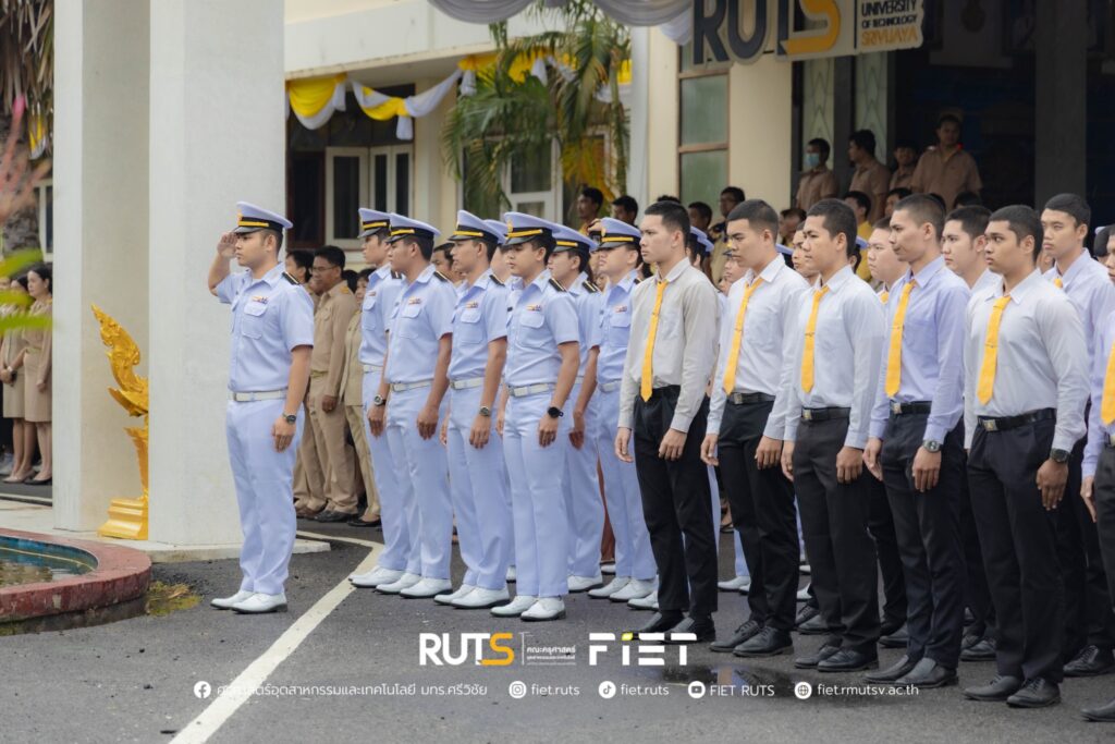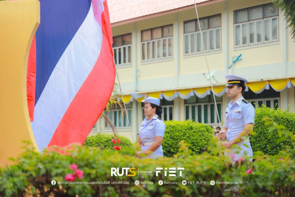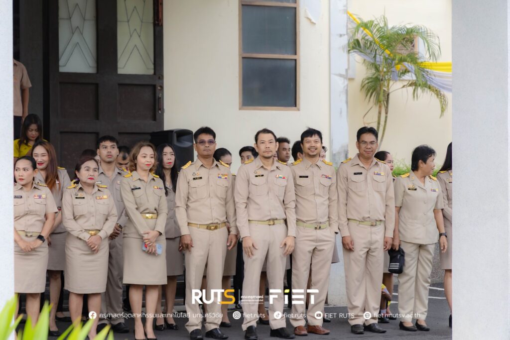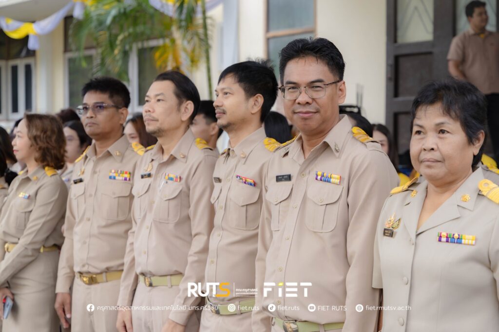 On September 29, 2025, at 8:00 AM, the Faculty of Industrial Education and Technology at Rajamangala University of Technology Srivijaya (RUTS), led by Associate Professor Chaiya Thanaphat Siri, Dean of the Faculty, along with administrators, faculty members, staff, and students, participated in the National Flag Day ceremony, including the raising of the Thai national flag and singing of the national anthem.