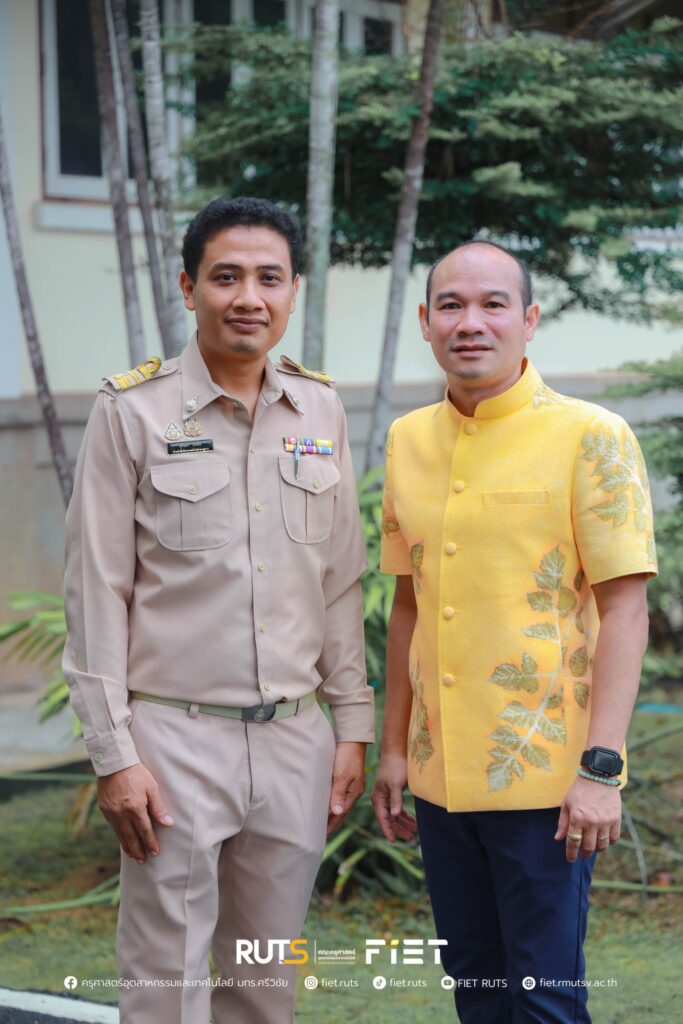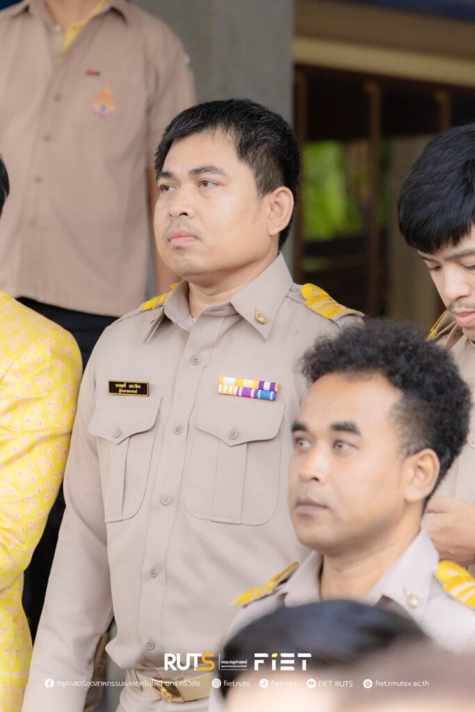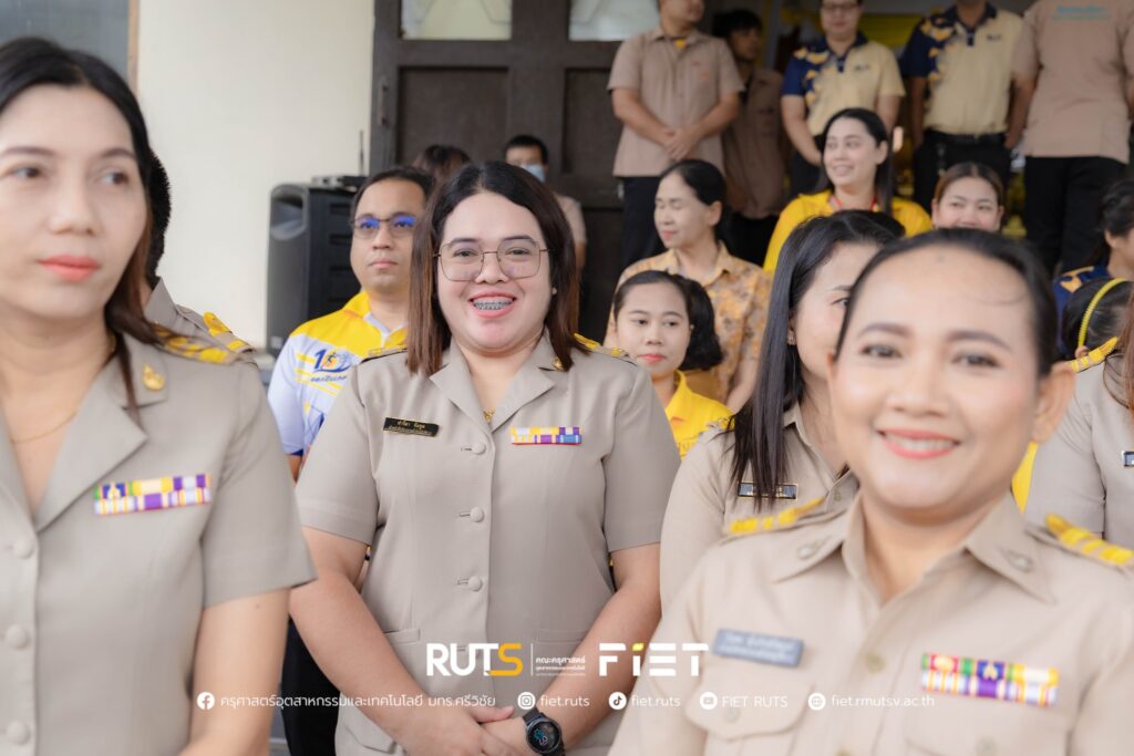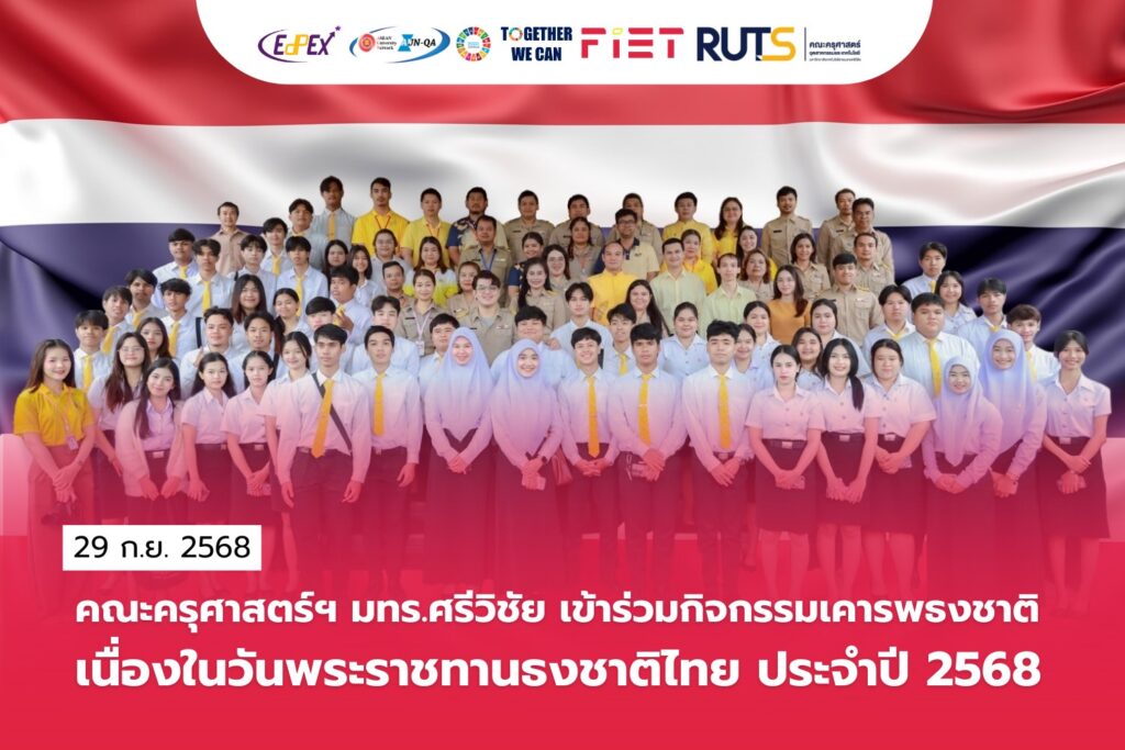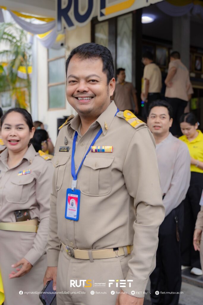 On September 29, 2025, at 8:00 AM, the Faculty of Industrial Education and Technology at Rajamangala University of Technology Srivijaya (RUTS), led by Associate Professor Chaiya Thanaphat Siri, Dean of the Faculty, along with administrators, faculty members, staff, and students, participated in the National Flag Day ceremony, including the raising of the Thai national flag and singing of the national anthem.